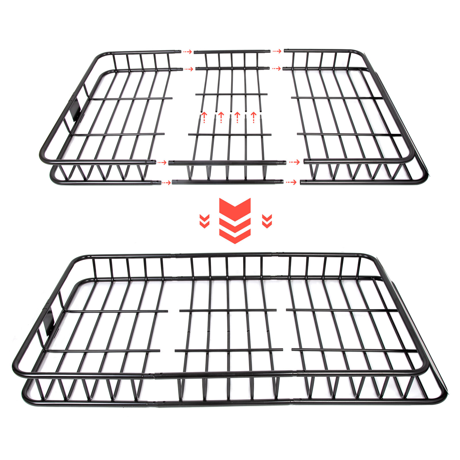 64" Universal Black Roof Rack Cargo Carrier w/ Extension Luggage Hold Basket SUV