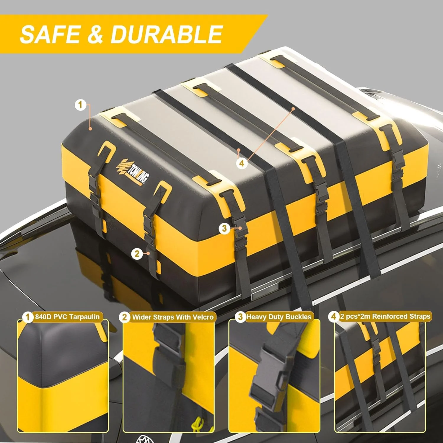 Car Roof Bag Rooftop top Cargo Carrier Bag 15 Cubic feet Waterproof for All Cars with/Without Rack