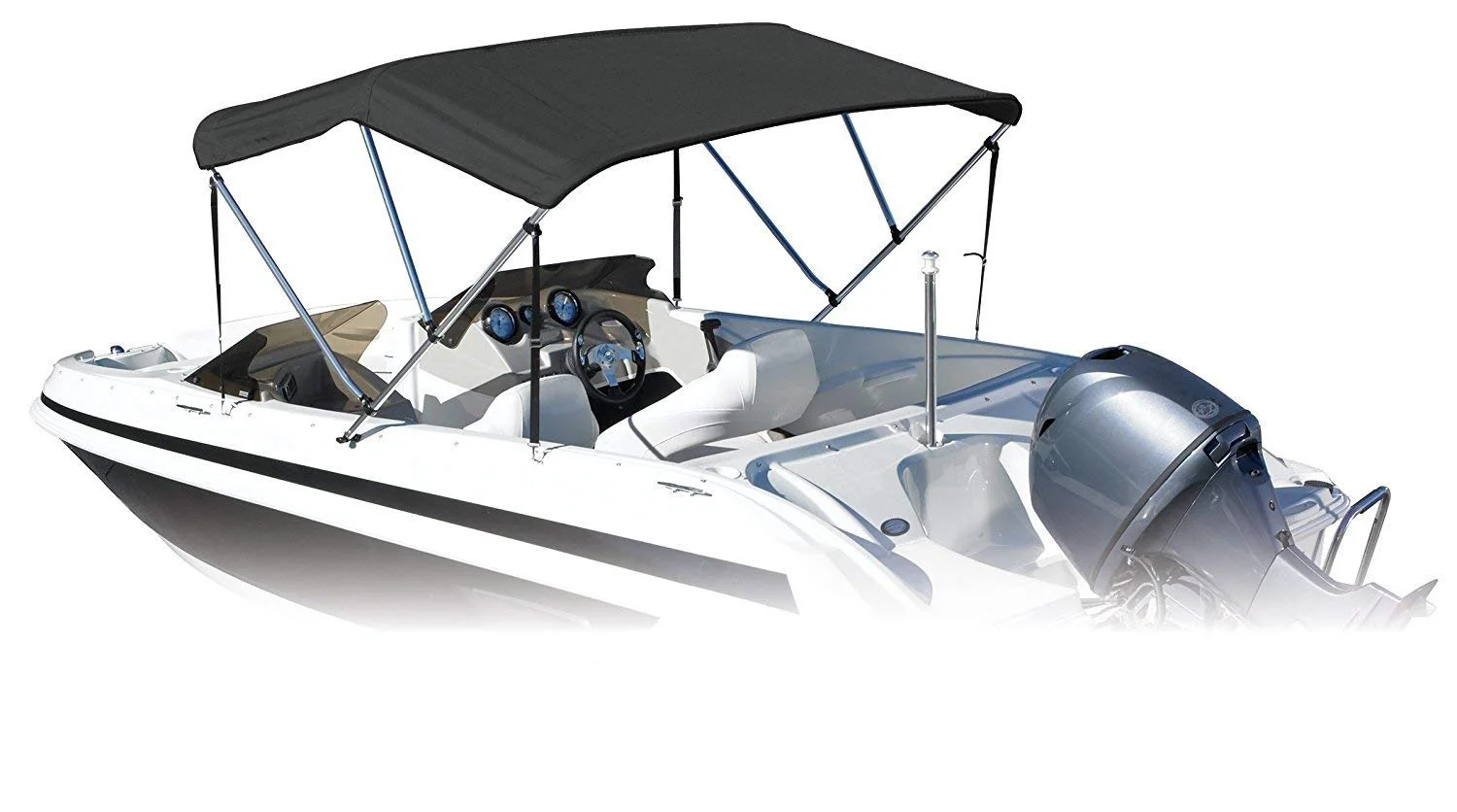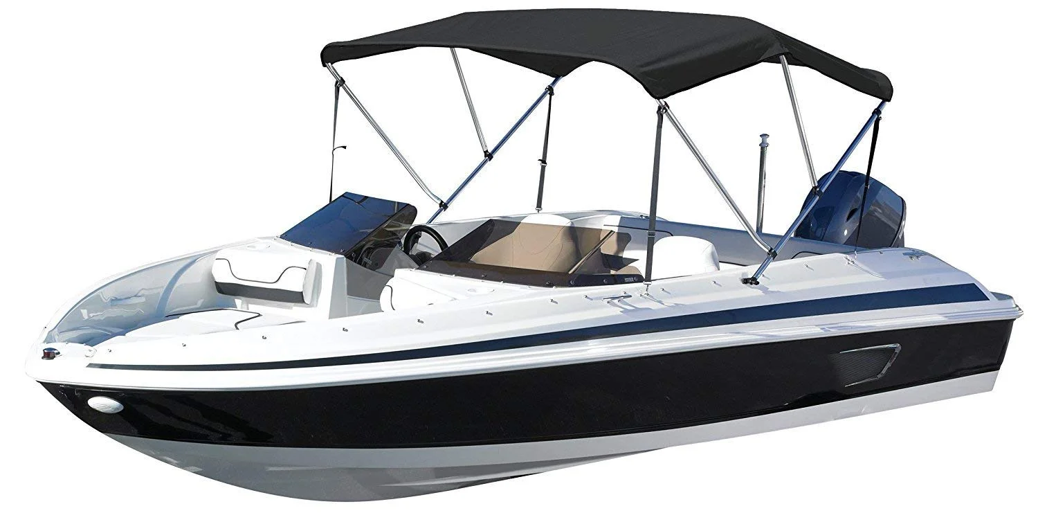 Sun Shield 3 Bow Bimini Top Boat Cover 600D Canvas, 1” Aluminum Frame, Hardware, and Storage Boot, 46" H