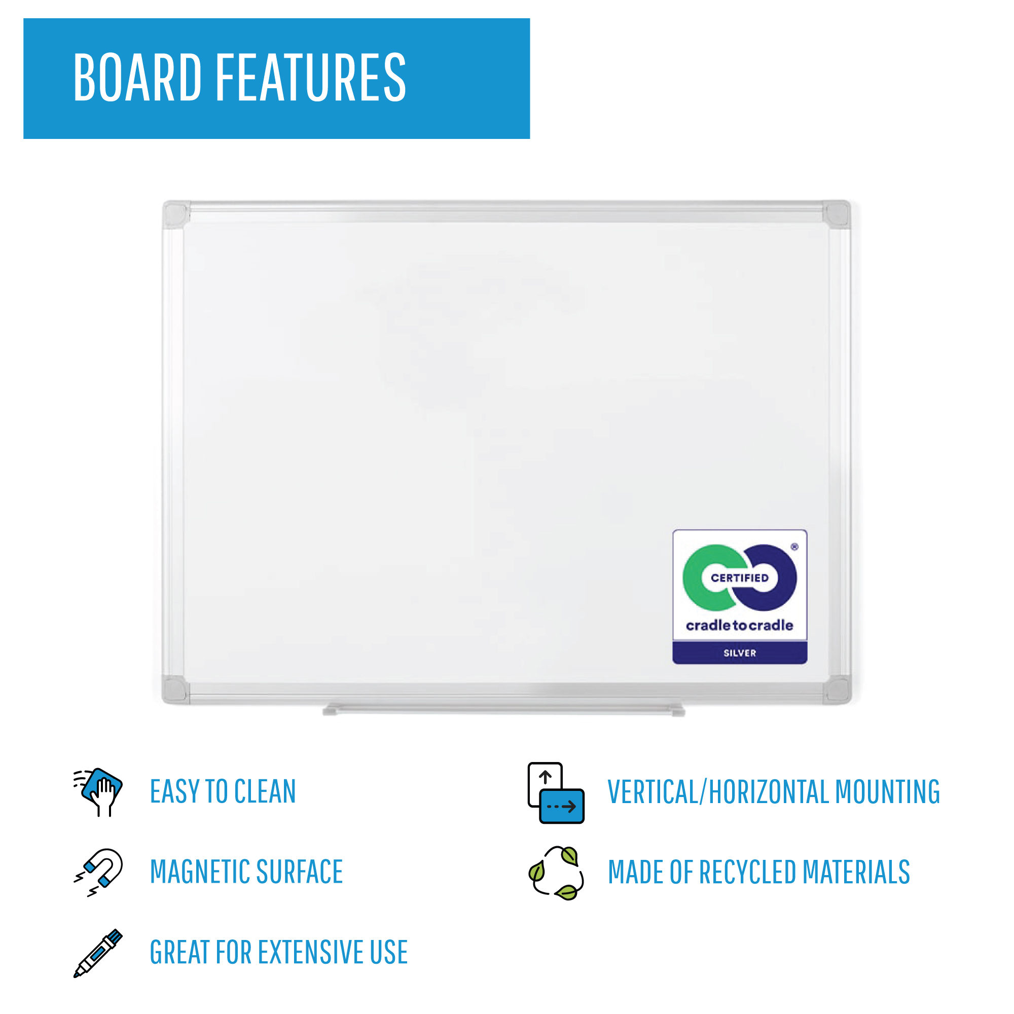 MasterVision Earth Magnetic Porcelain Dry-Erase Board, 48" X 72", Aluminum Frame