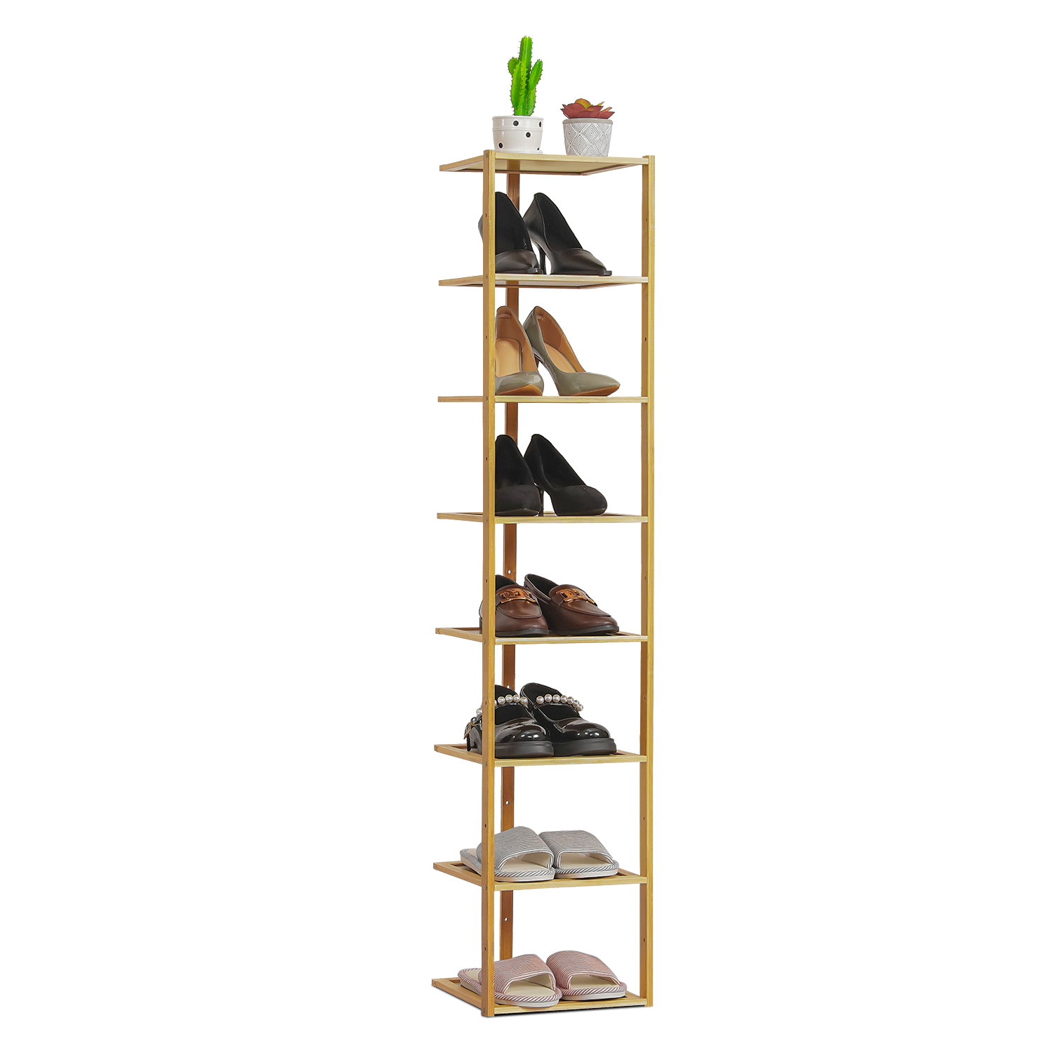 MoNiBloom Bamboo 8 Tiers Corner Shoes Rack, 8 Pairs Organizer Stand, Natural, for Entryway