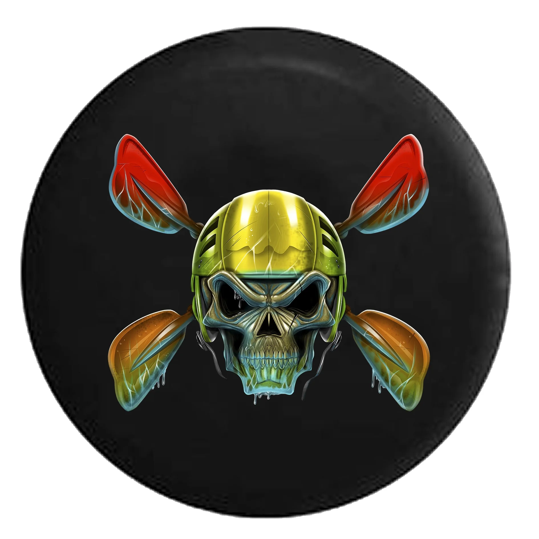 Kayak Whitewater Rafting Canoe Skull in Helmet with Water on Paddles Black 27.5 in