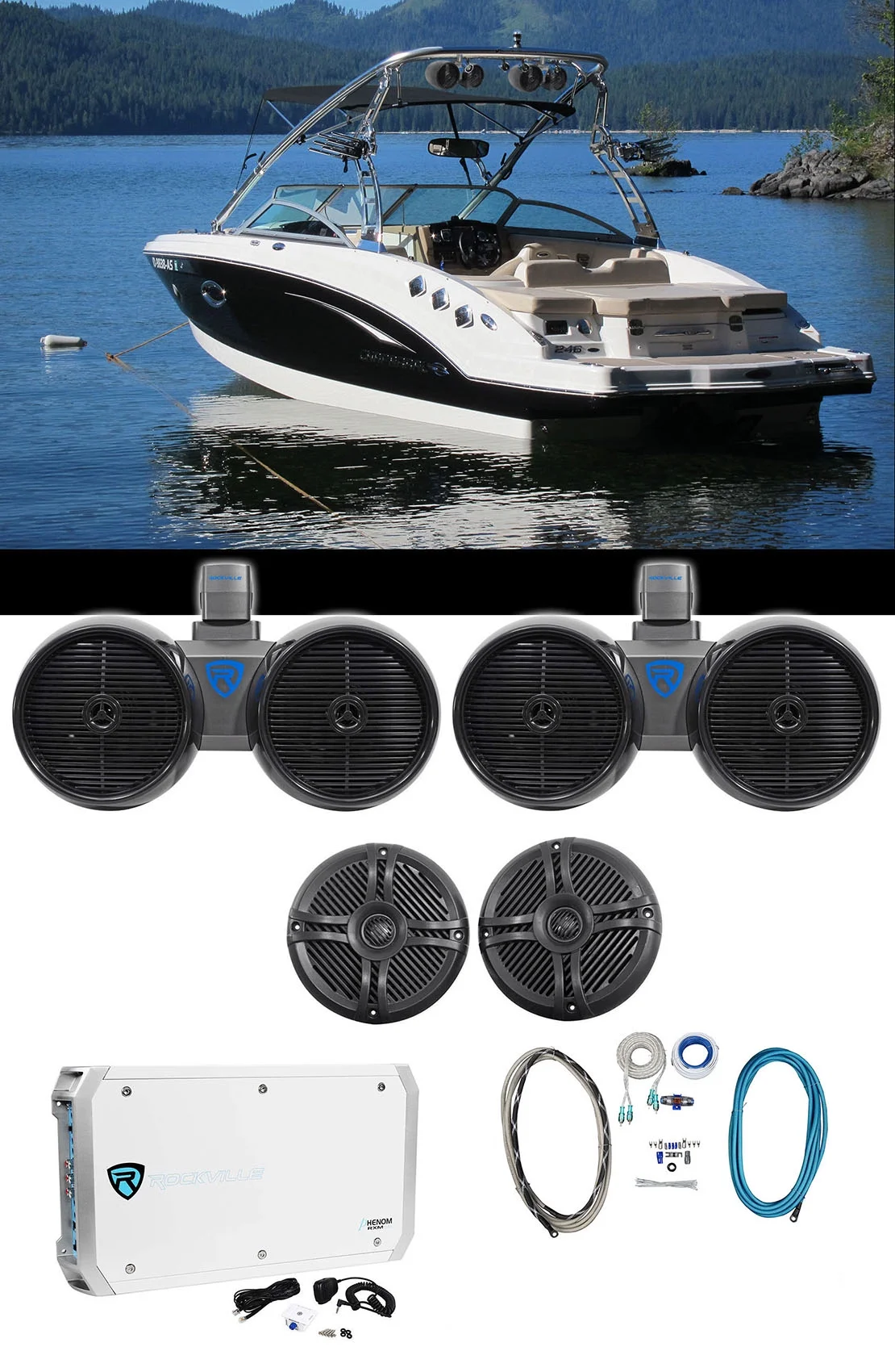 2) Rockville Dual 8" Wakeboards+(2) 6.5" Speakers+6-Channel Amplifier+Amp Kit