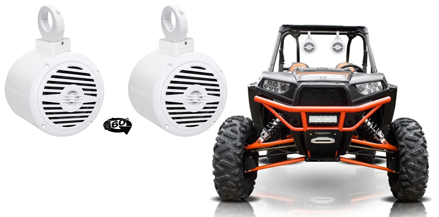 (2) Rockville 5.25" 360° Swivel White Aluminum Tower Speakers For RZR/ATV/UTV