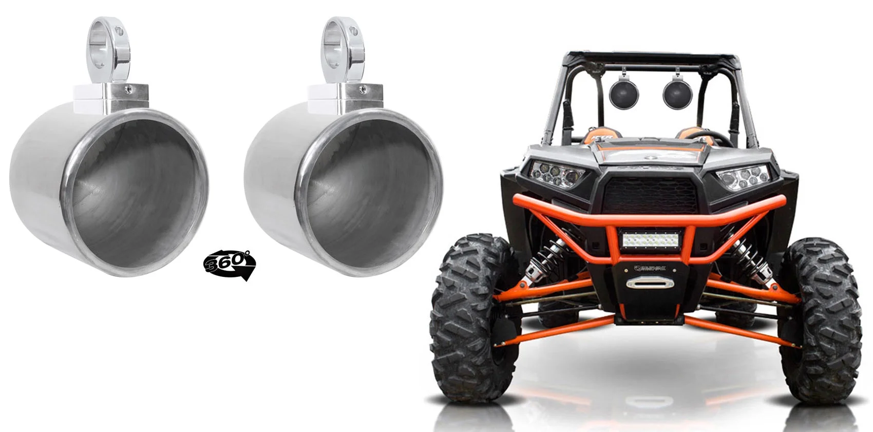 2 Rockville MAC90S 8" 360° Degree Swivel Chrome Tower Speaker Pods RZR/ATV/UTV