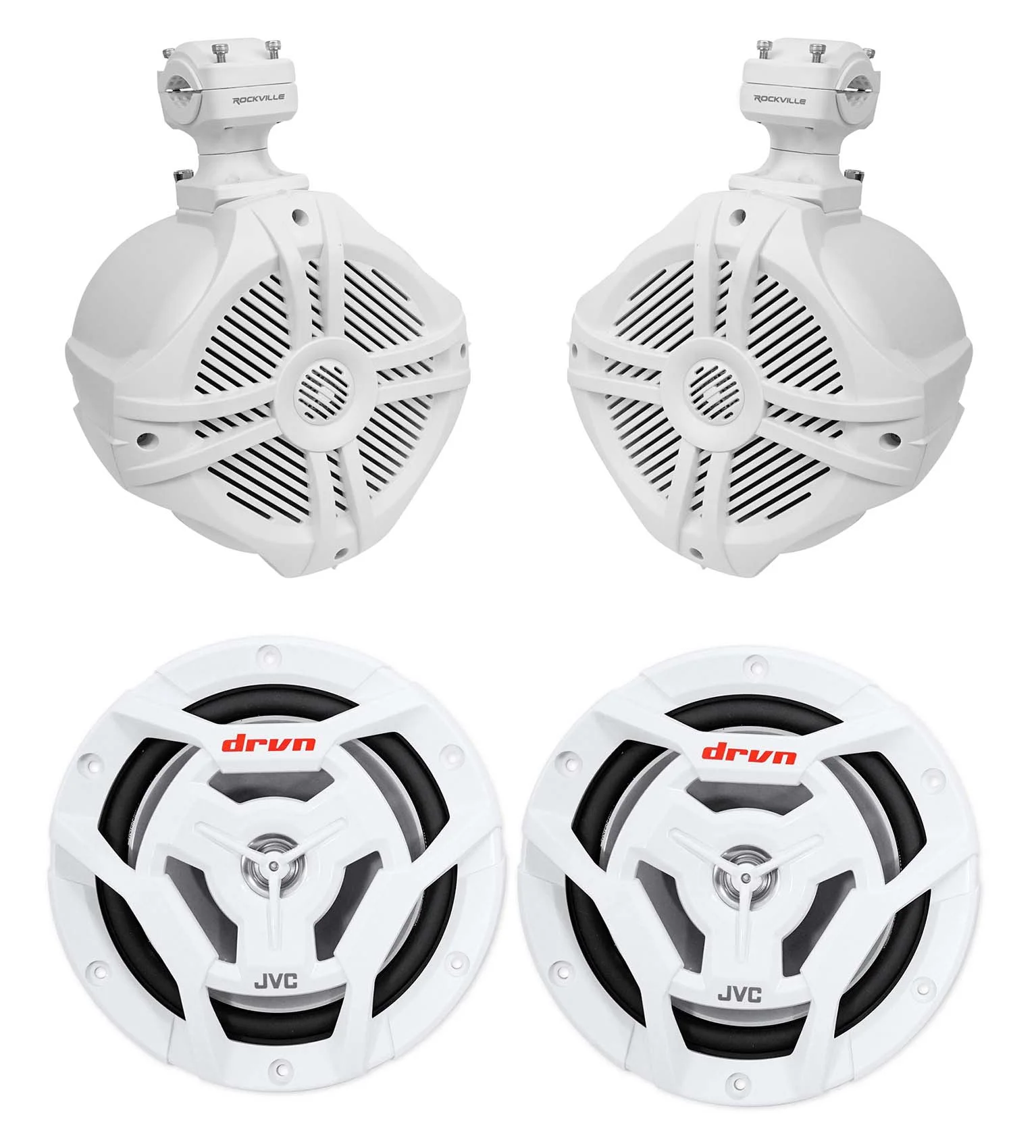 2) Rockville RWB65W 6.5" White 250w Marine Wakeboard Tower+2) JVC 6.5" Speakers