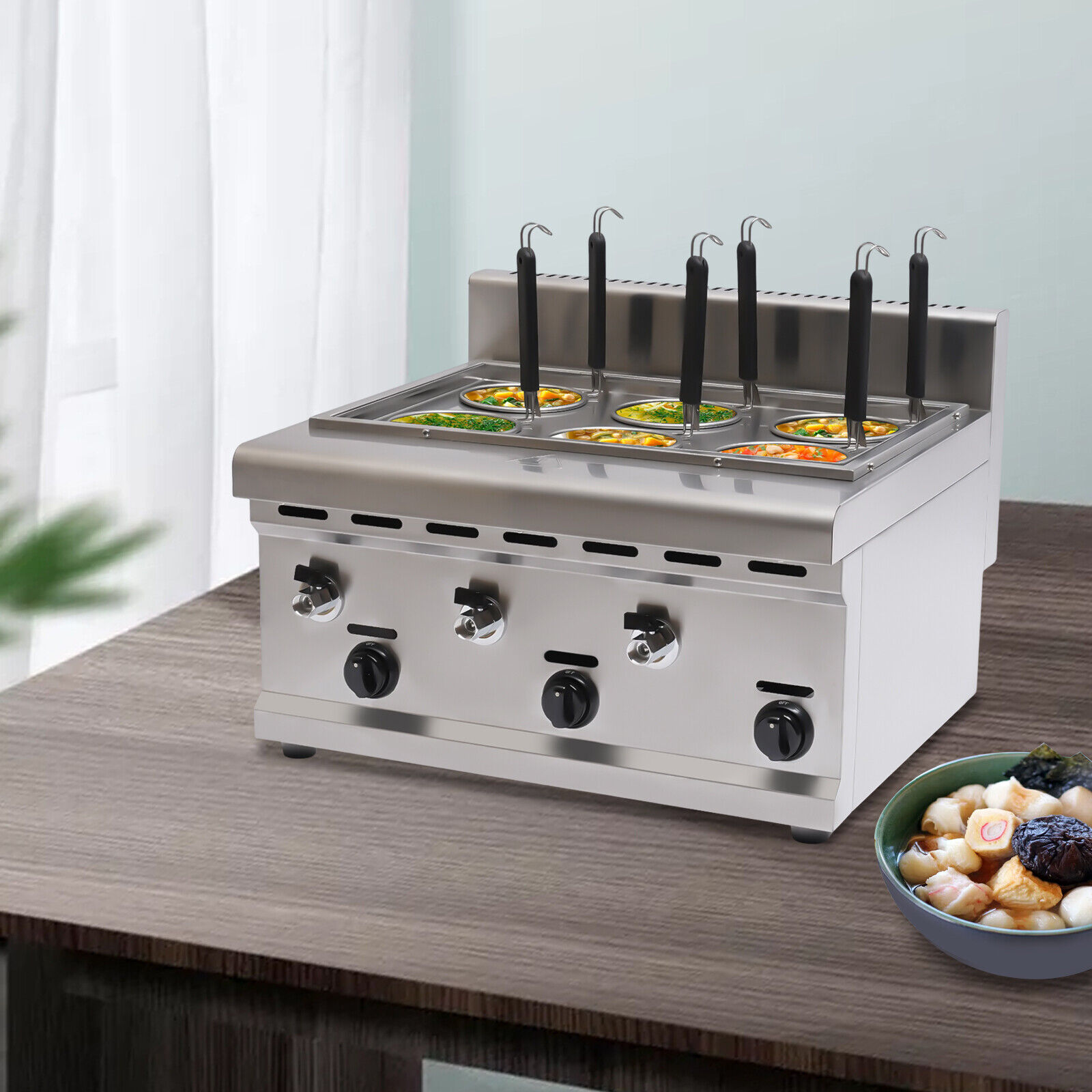 6 Holes Desktop Commercial Noodle Pasta Ramen LPG Propane Gas Cooker & 2 Tanks