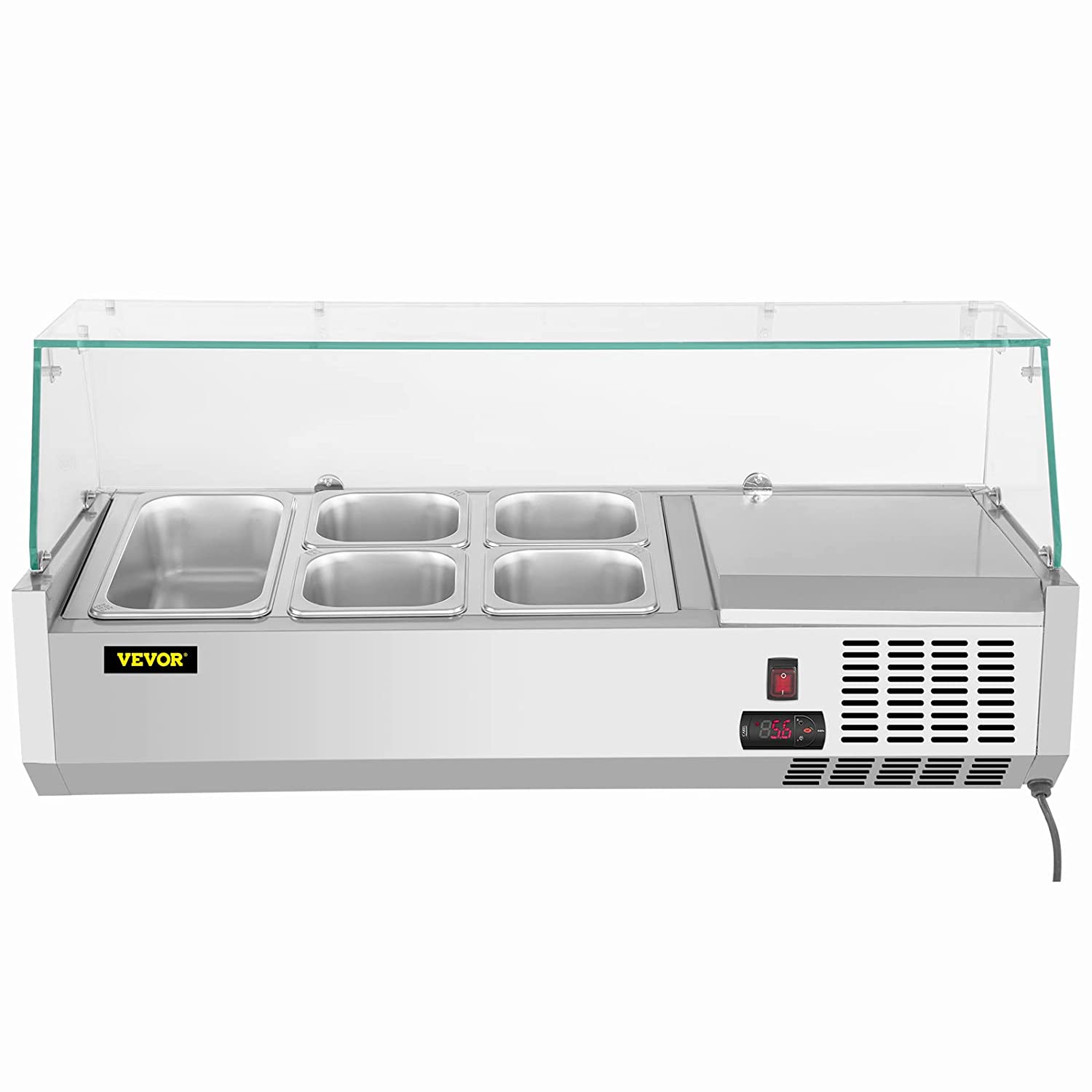 Vevor 40 in. & 7.8 qt. Refrigerated Condiment Prep Station Sandwich Table with 1.33 Pans & 4.16 Pans