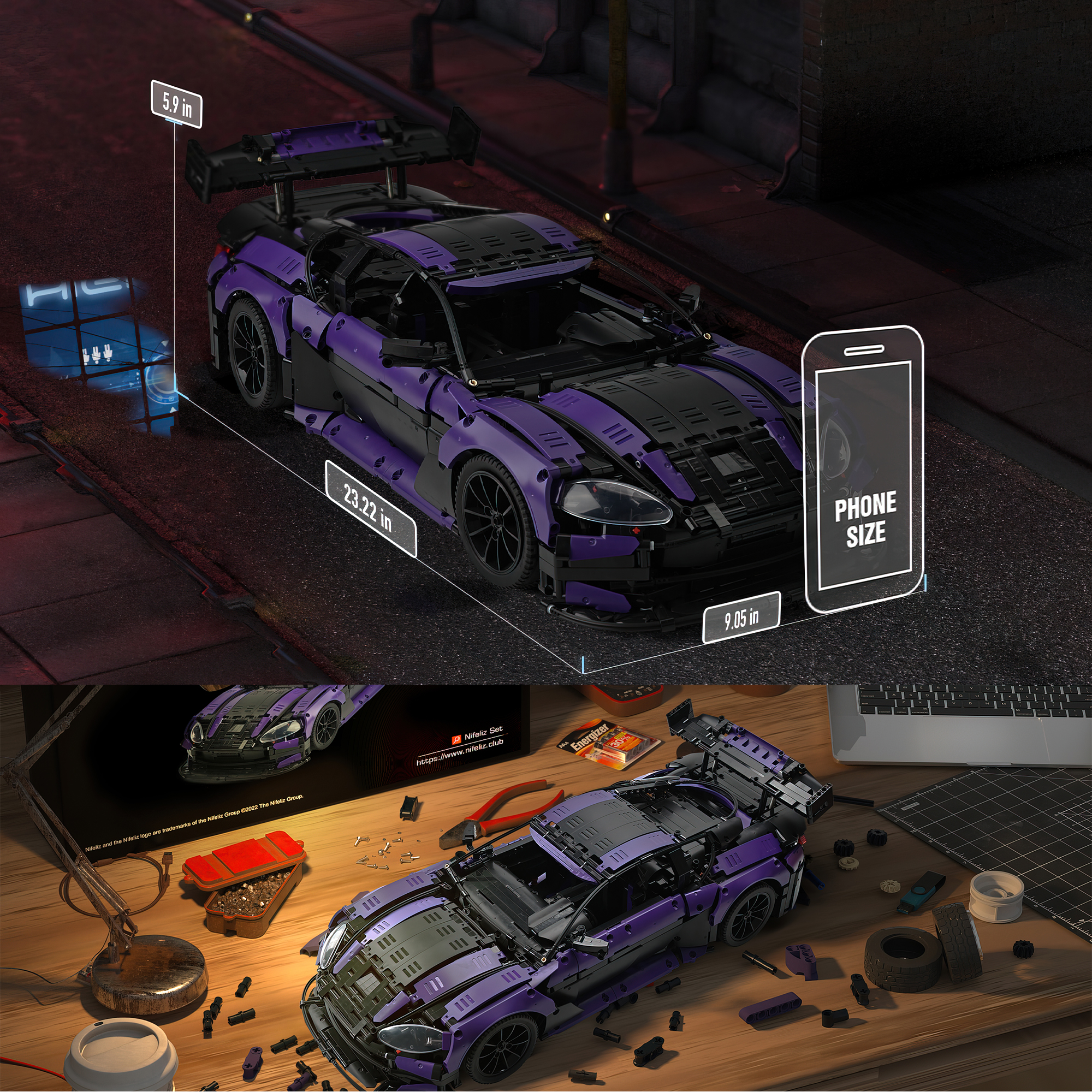 MACTANO Super Car Building Block Set Speed Champion GT4 Sports Car Building Kit Toy for Adult Purple
