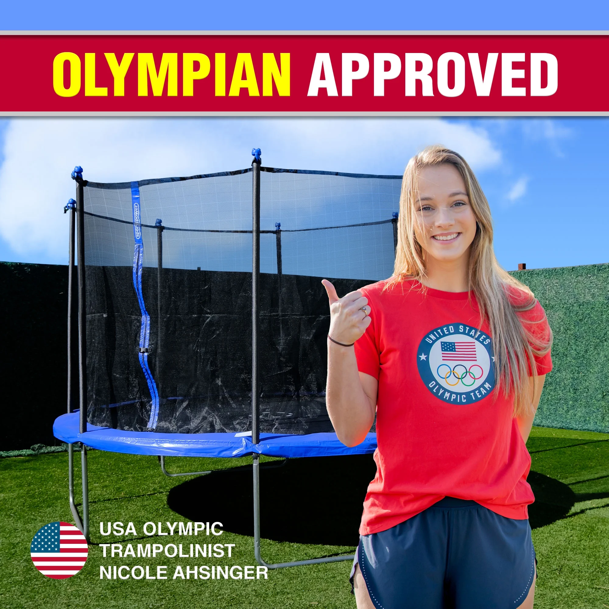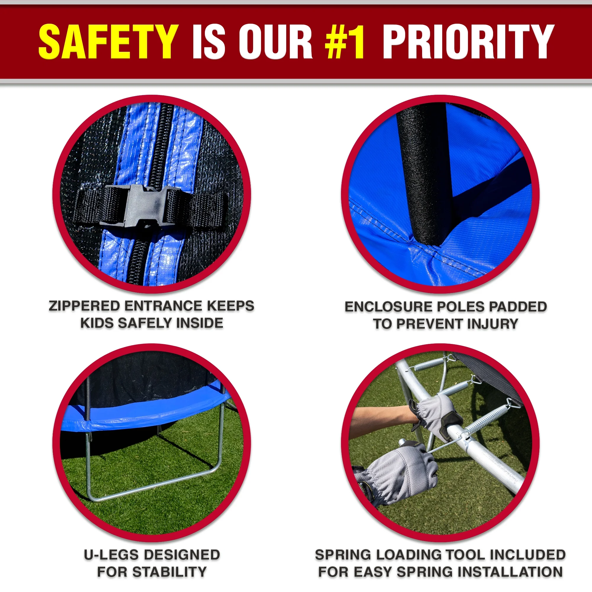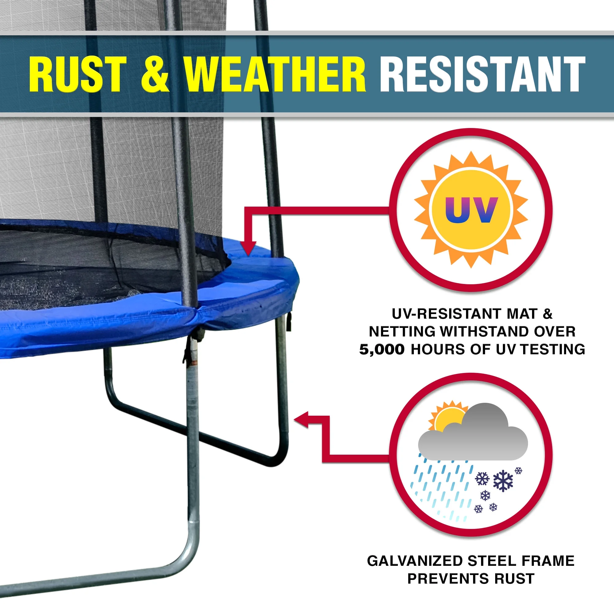 TruJump 12ft Trampoline with UV Resistant Safety Enclosure, ASTM Approved, Safe Padded Frame, Anti Rust Metal Frame, Heavy Duty, Outdoor Fun, Blue