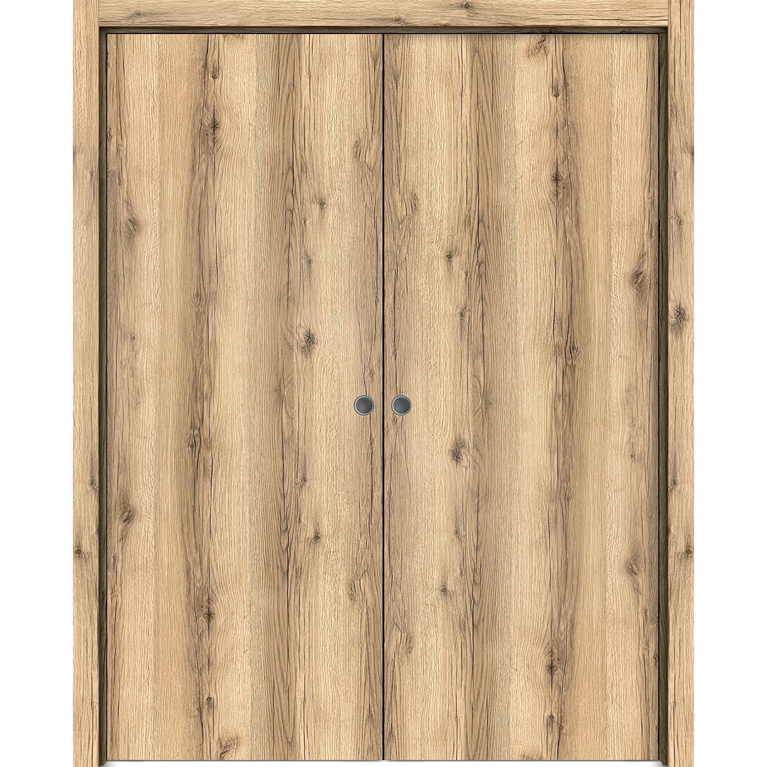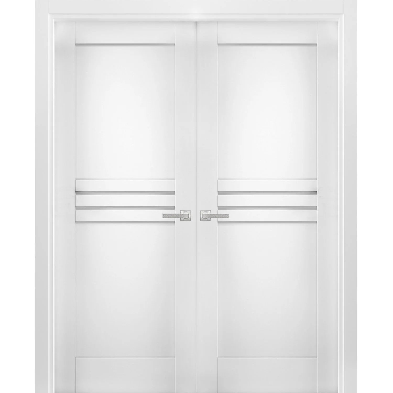 Solid French Double Doors 48 x 96 inches / Mela 7444 White Silk / Wood Solid Panel Frame / Closet Bedroom Modern Doors