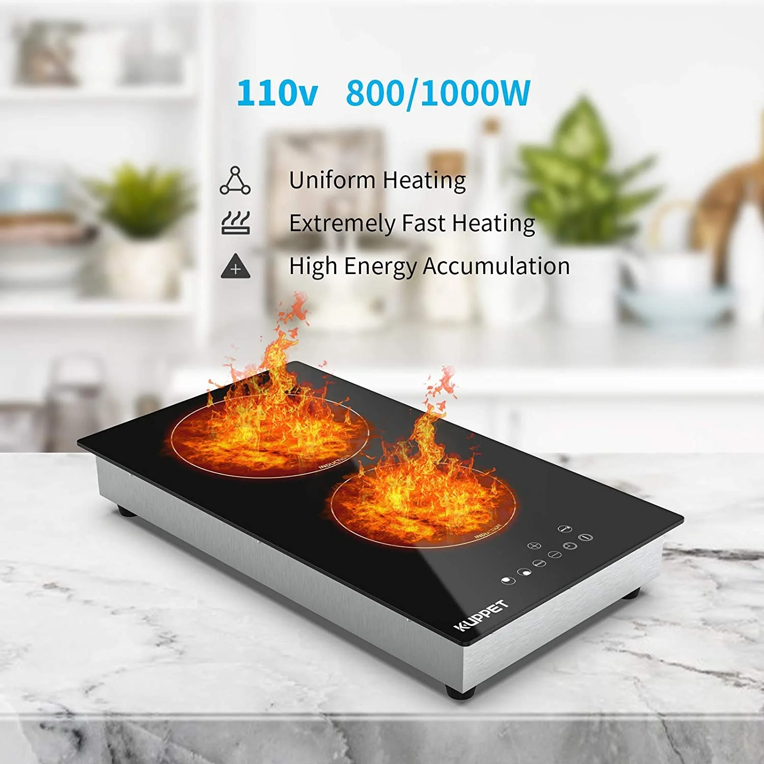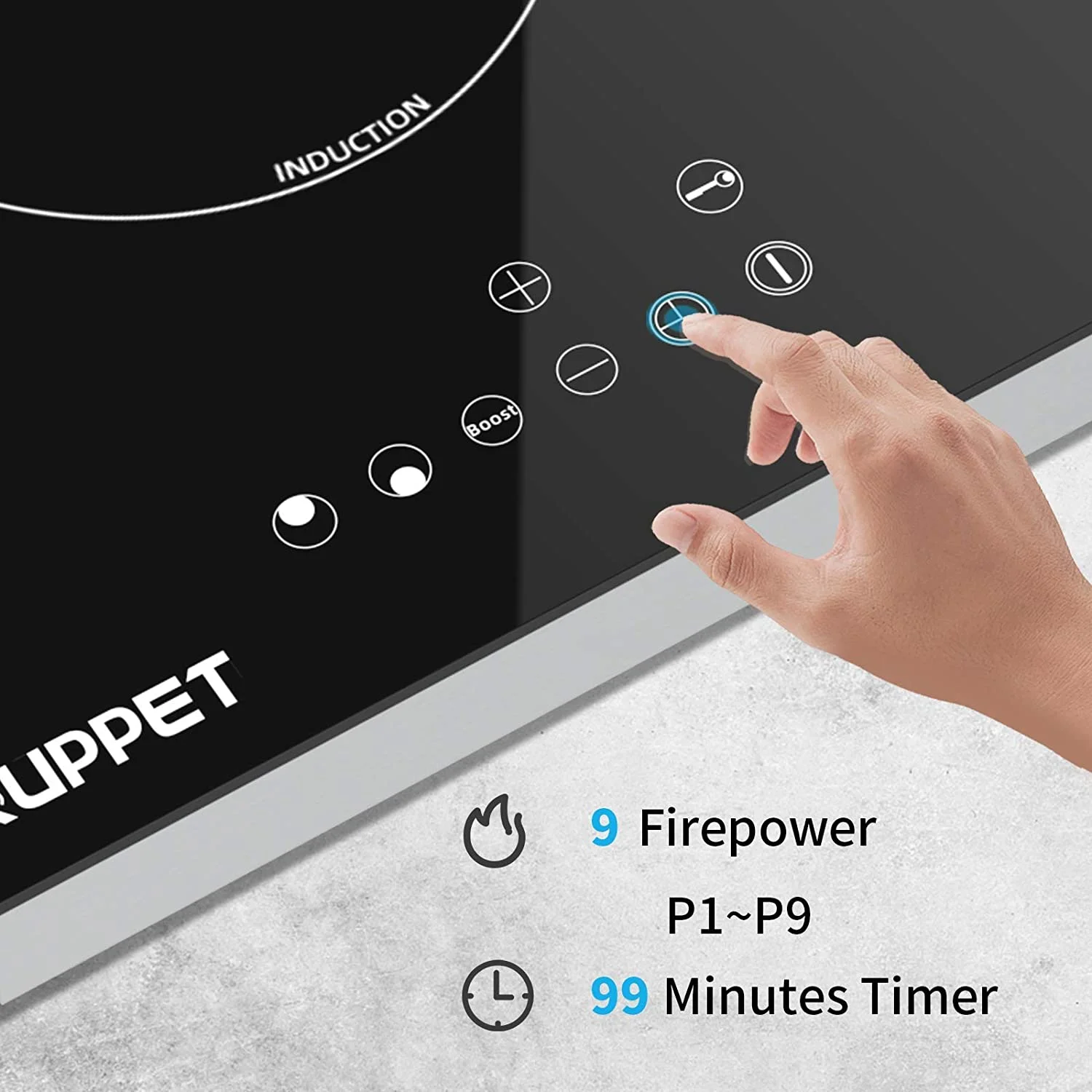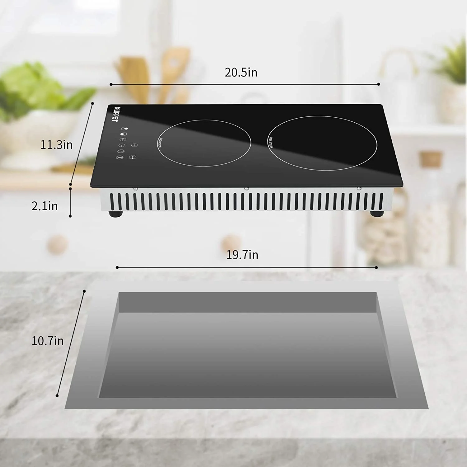 Empava Electric Stove Induction Cooktop Vertical with 2 Burners Vitro Ceramic Smooth Surface Glass