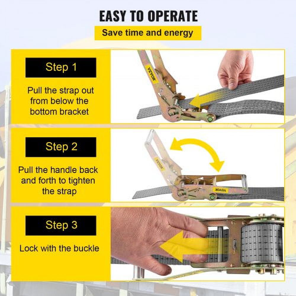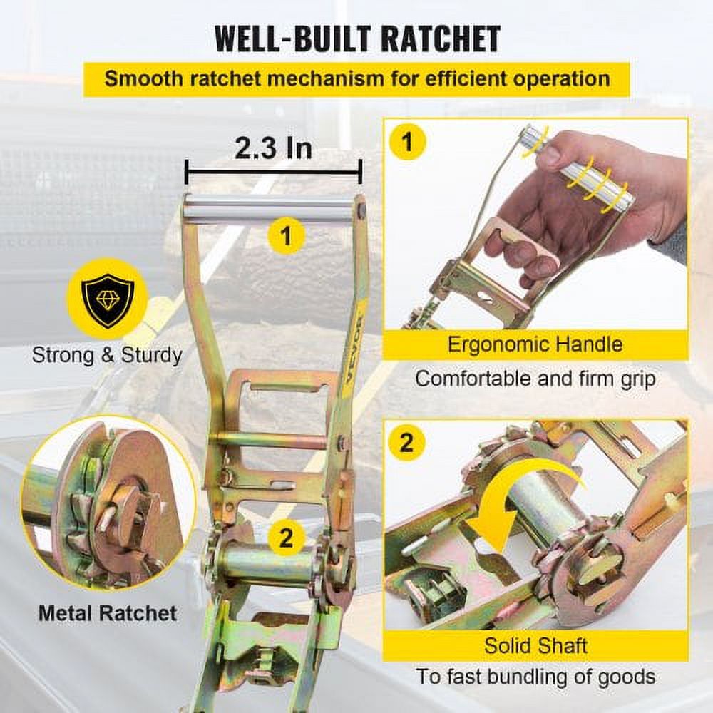 Vevor 2 in. x 15.6 ft. Heavy Duty Ratchet Straps with Snap Hooks - 4000 lbs Working Load