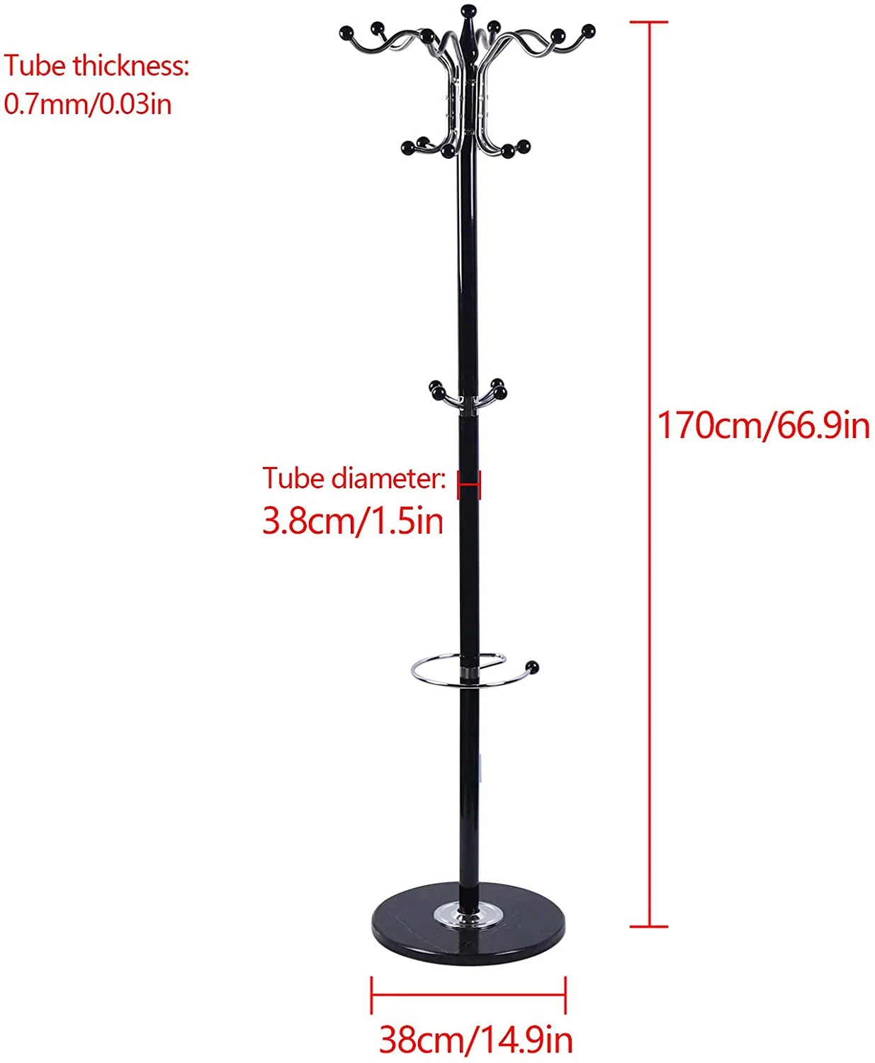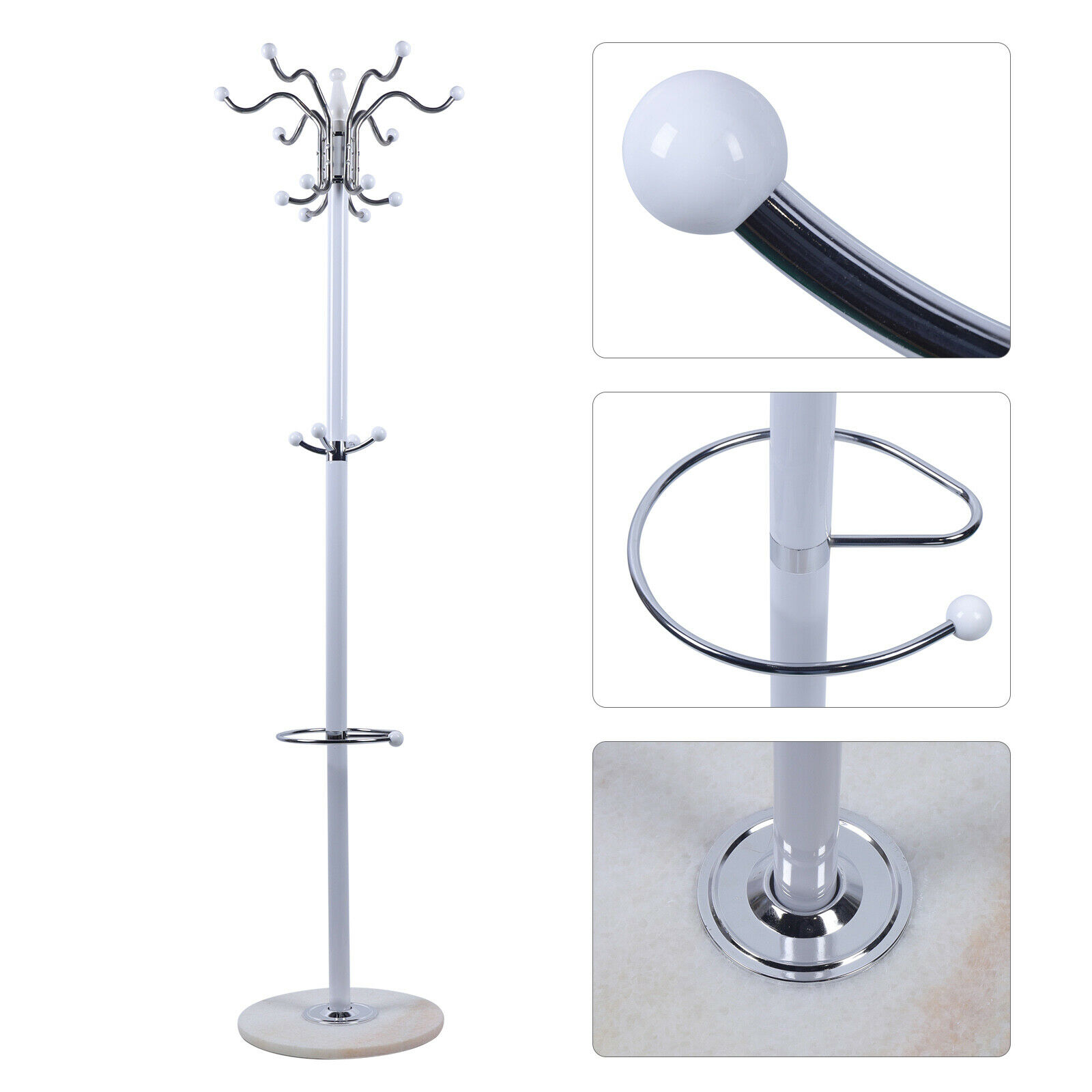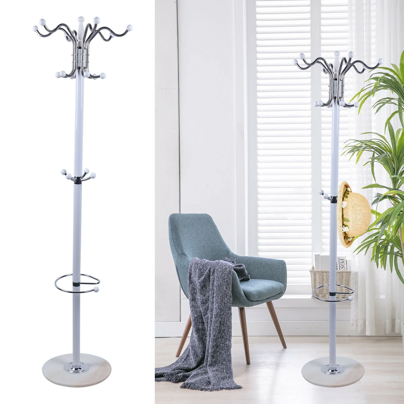 Coat Rack 16 Hooks Hat Jacket Stand 4 Levels Hat Holder Hanger Rack Marble Base