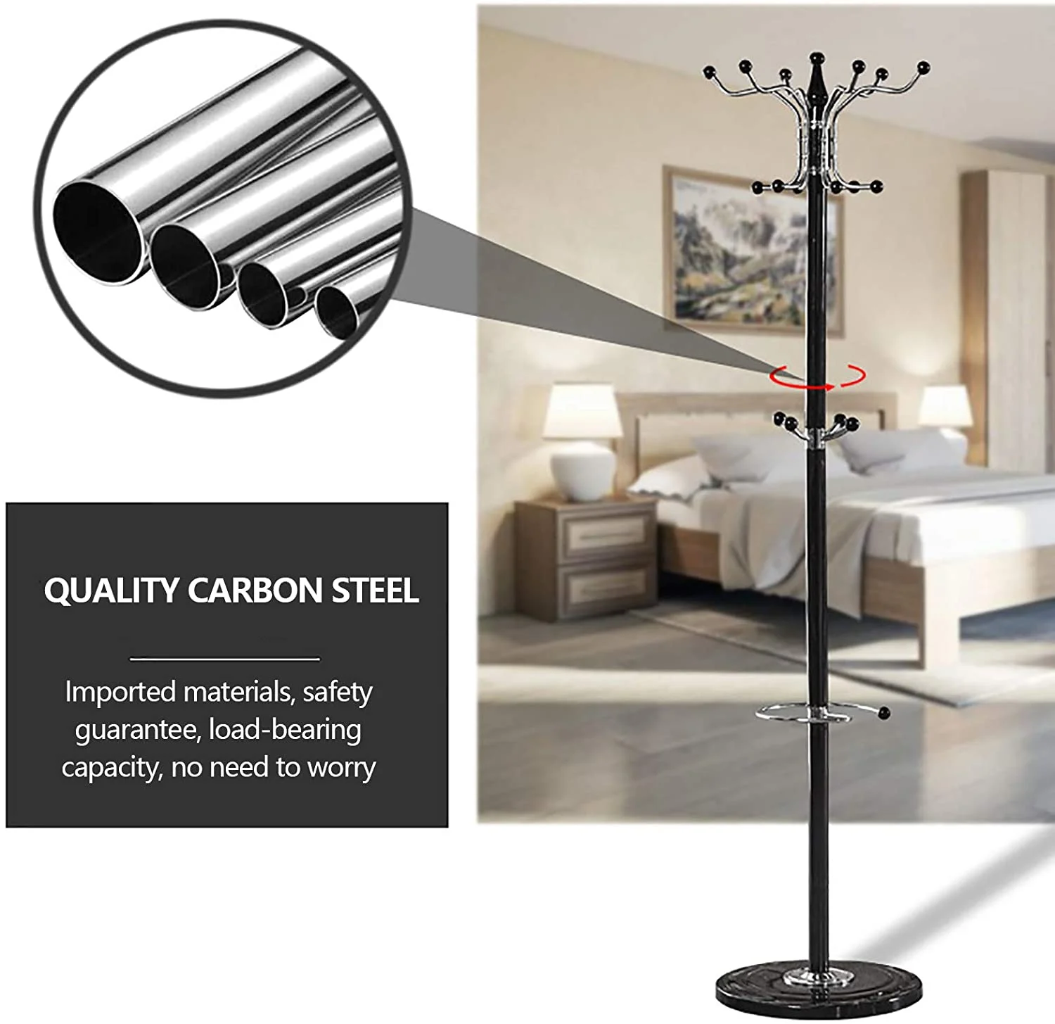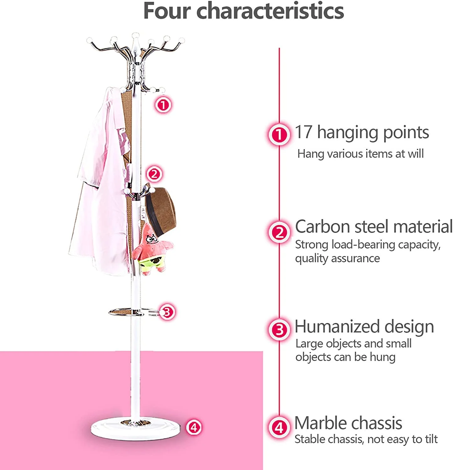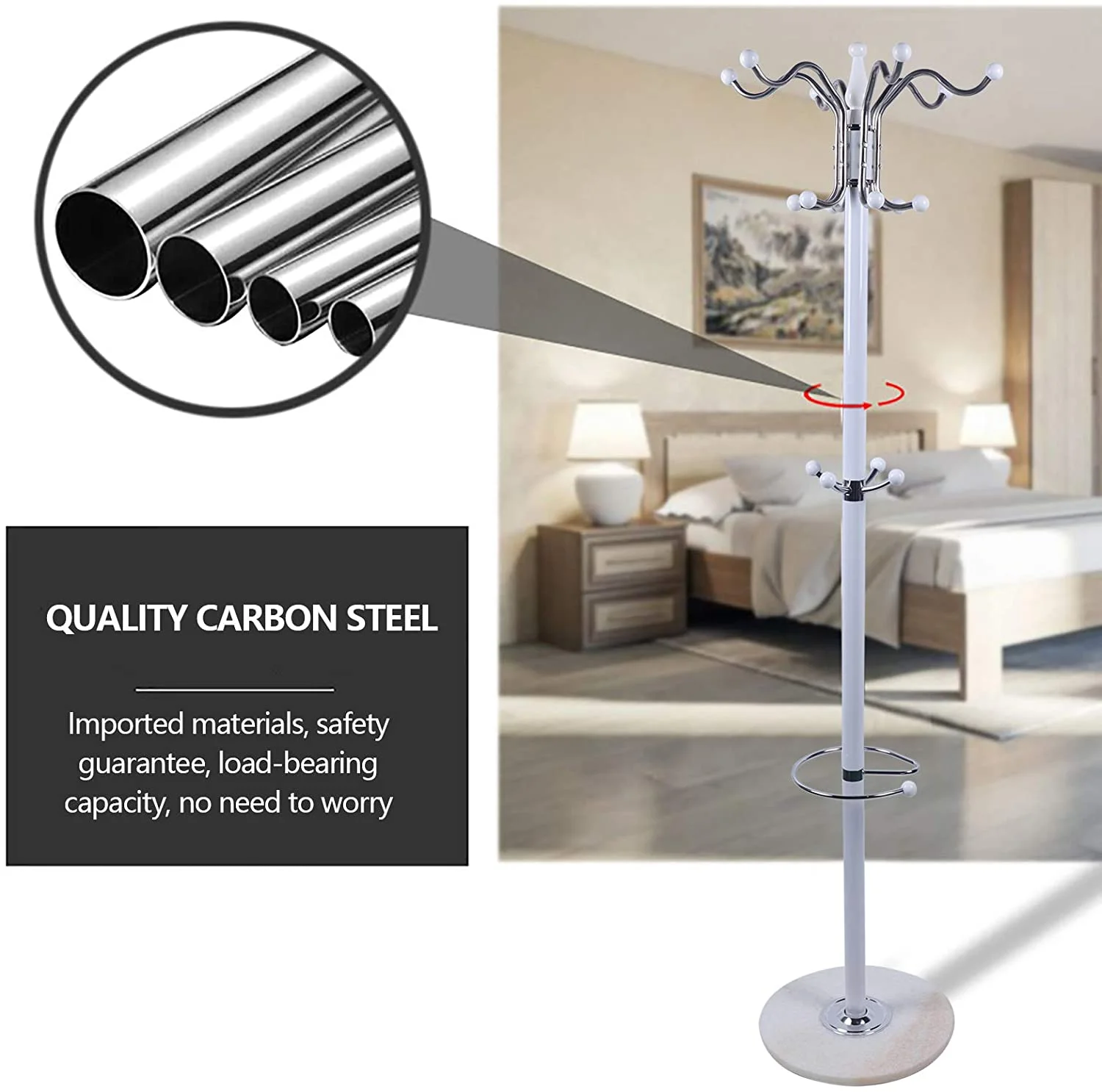 Coat Rack 16 Hooks Hat Jacket Stand 4 Levels Hat Holder Hanger Rack Marble Base