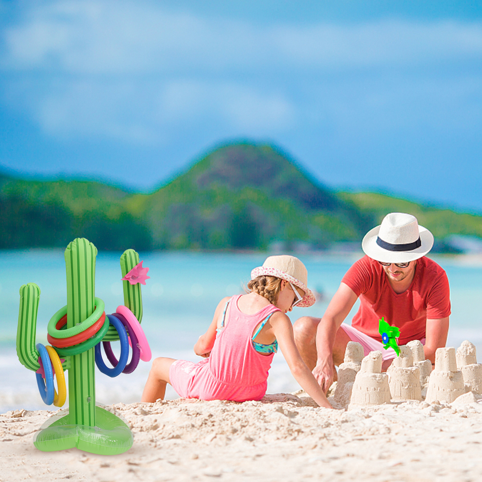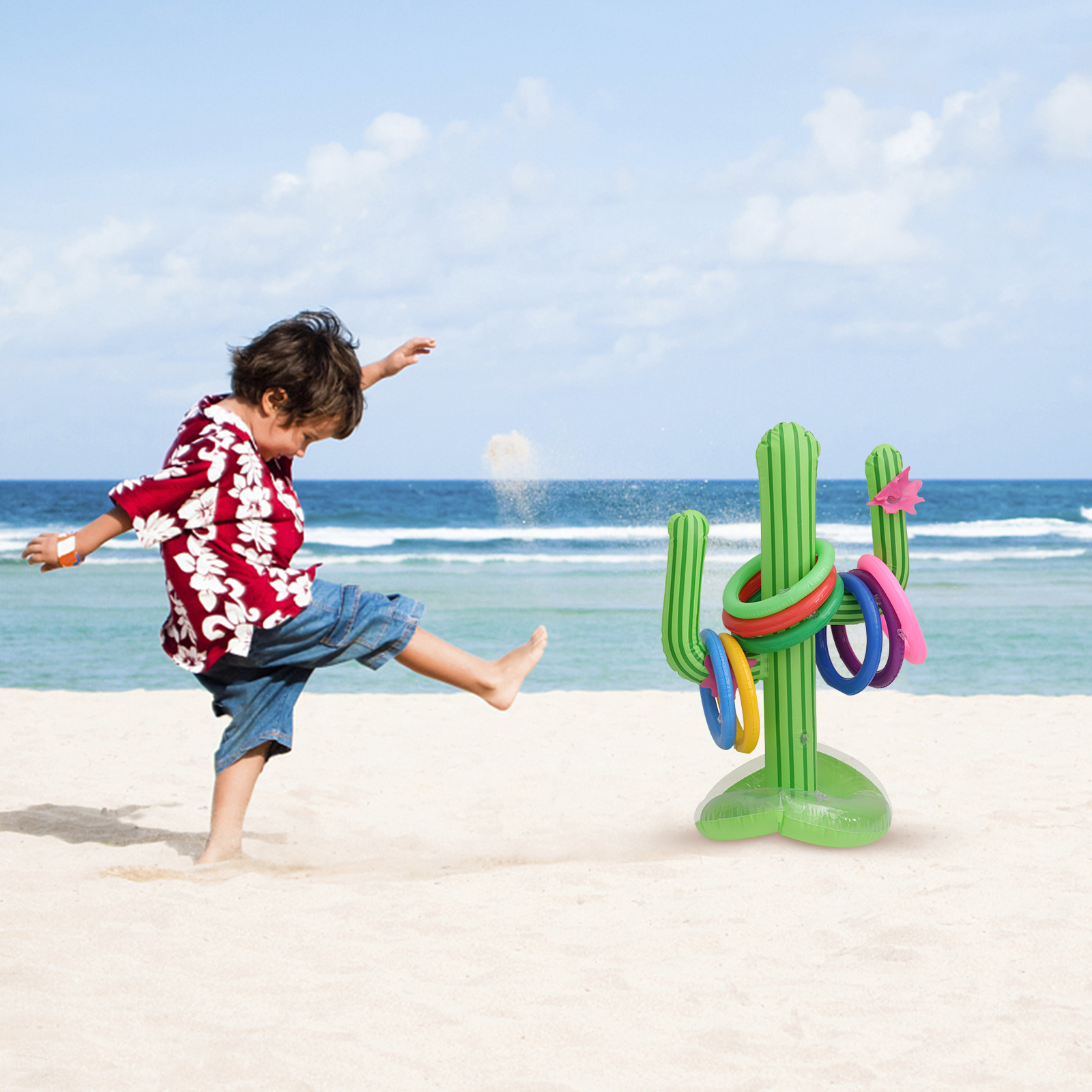 Beach Cactus Toy Ring Floating Toss Game Inflatable Pool Toys Summer Pvc 3 Sets