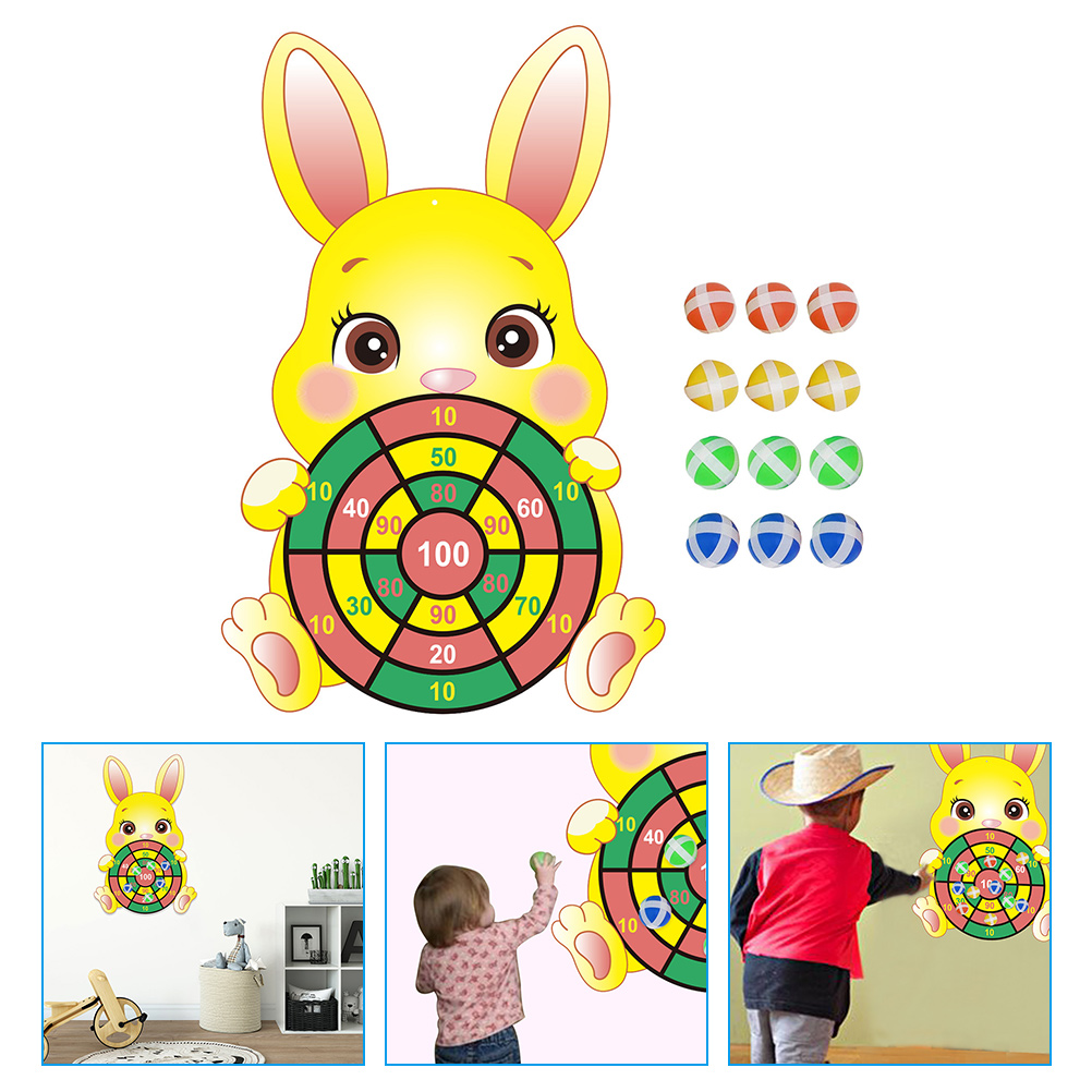 1 Set Easter Bunny Dart Board Kids Sticky Ball Dart Board Board Games Dart Board and Sticky Balls (Random Style)