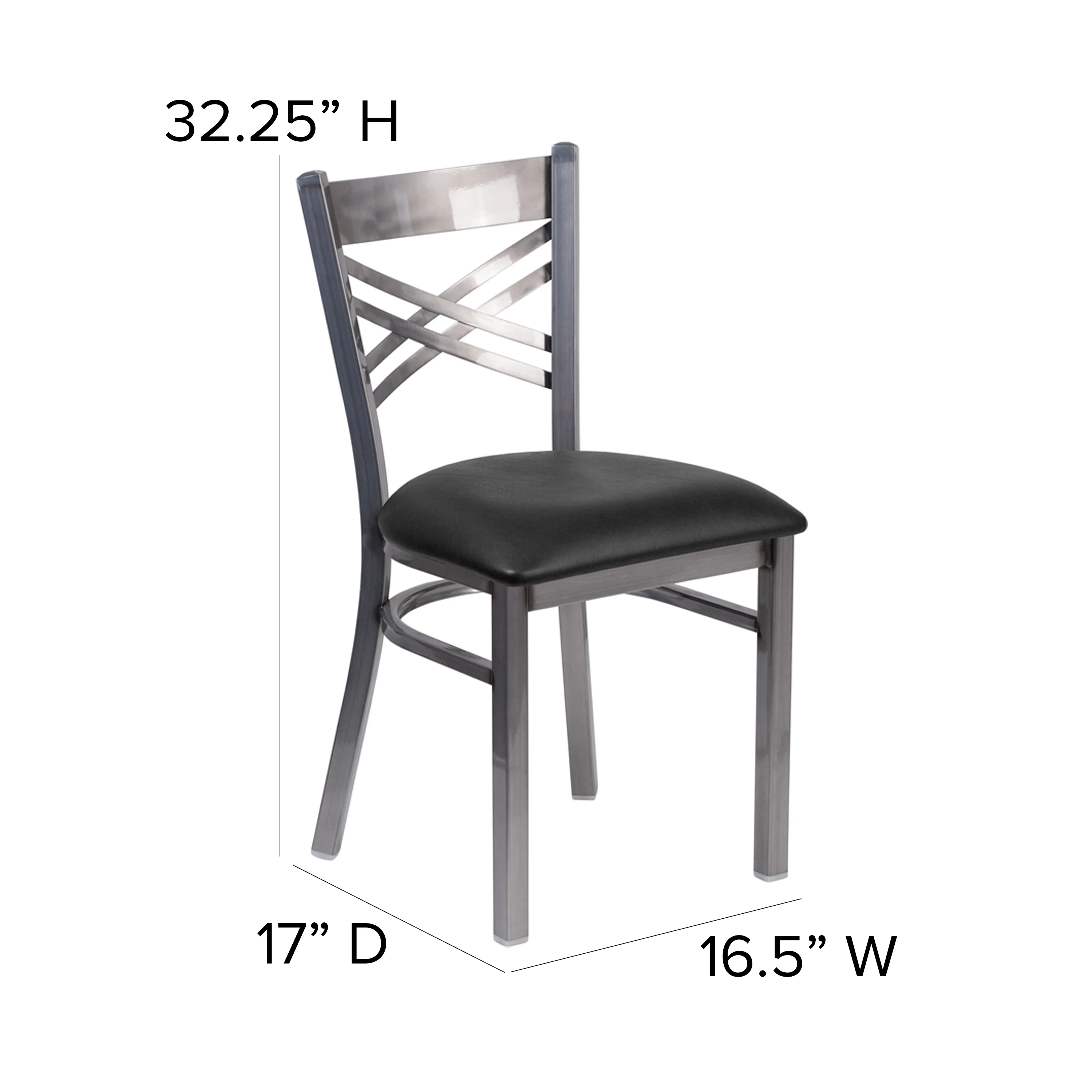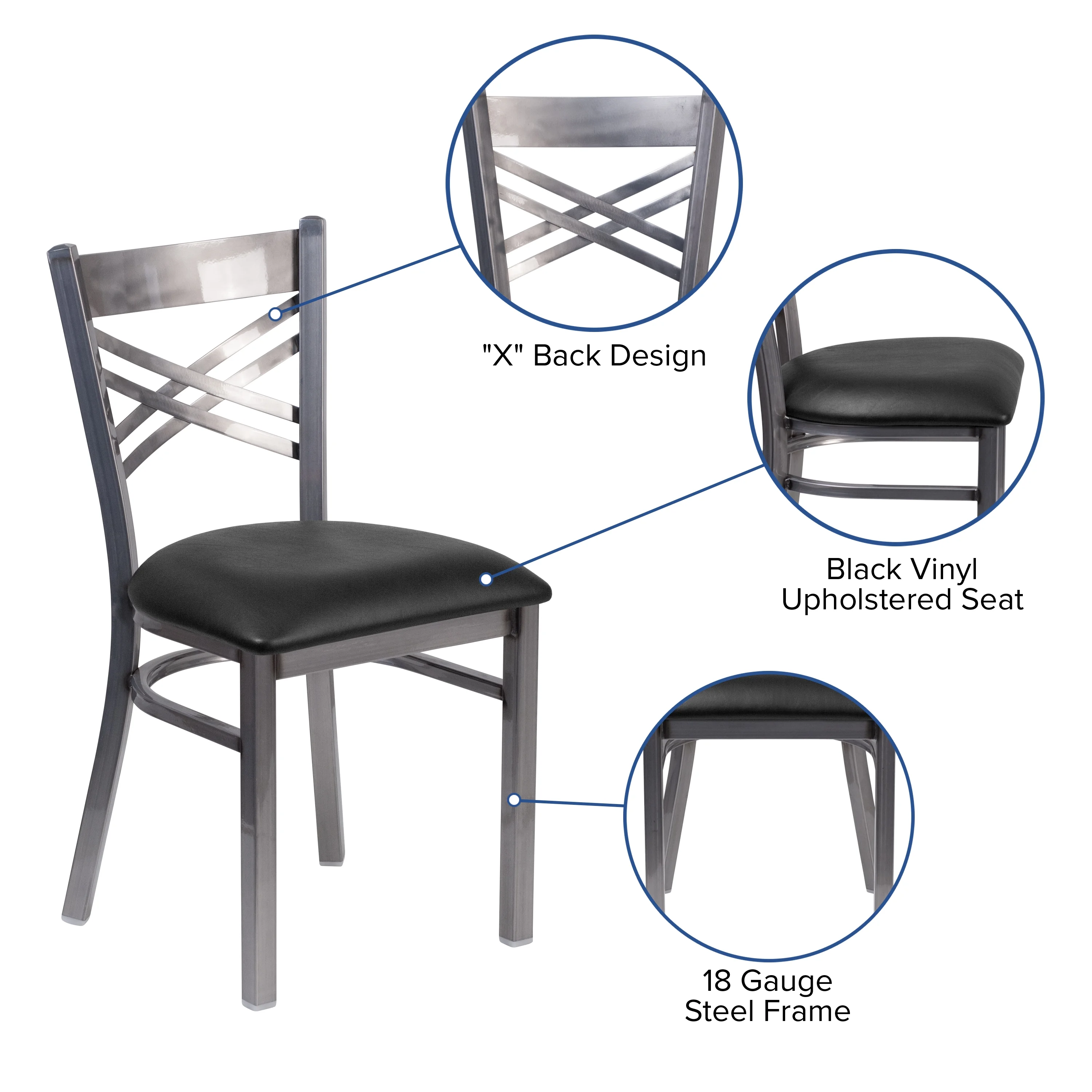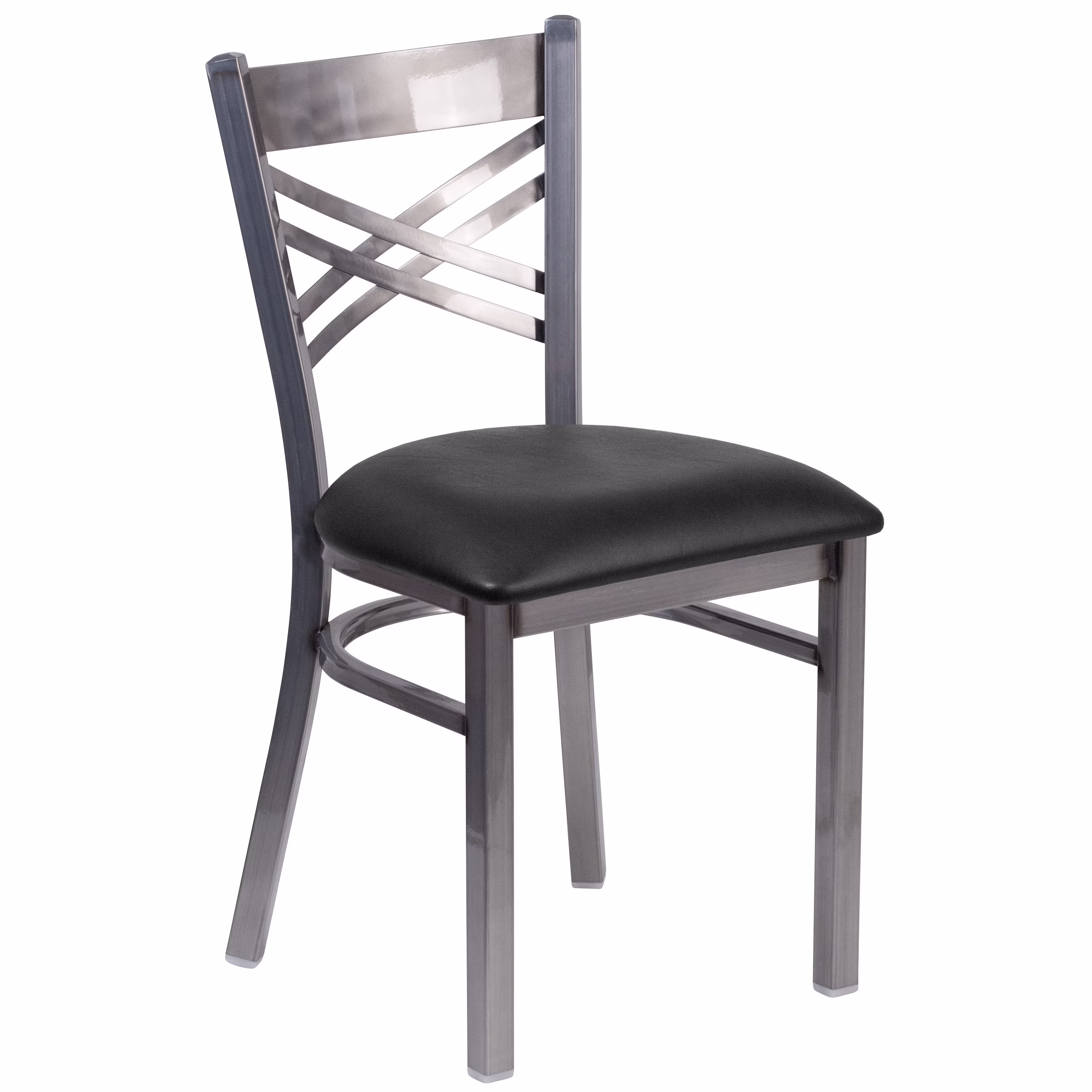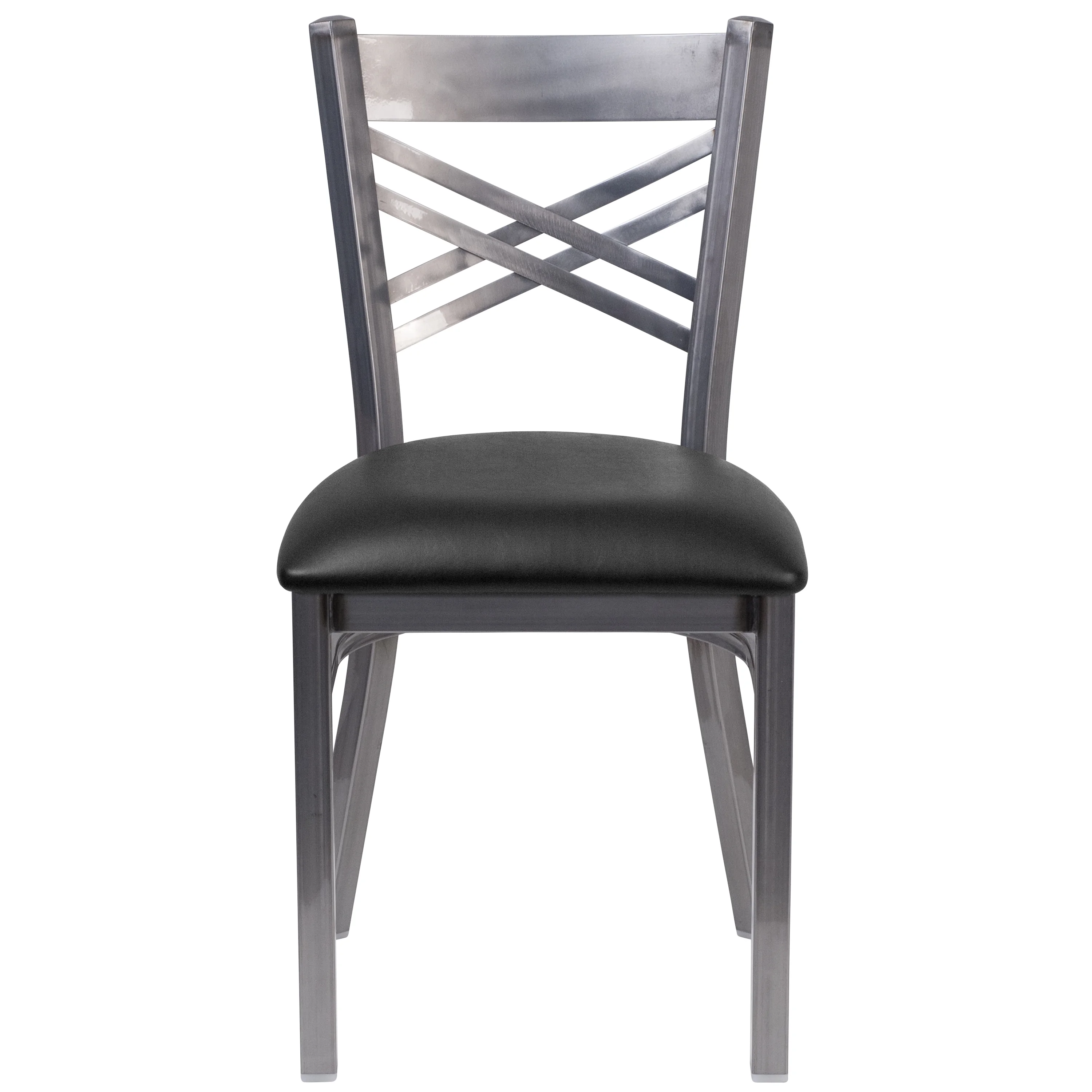 Flash Furniture HERCULES Series Clear Coated ''X'' Back Metal Restaurant Chair - Black Vinyl Seat