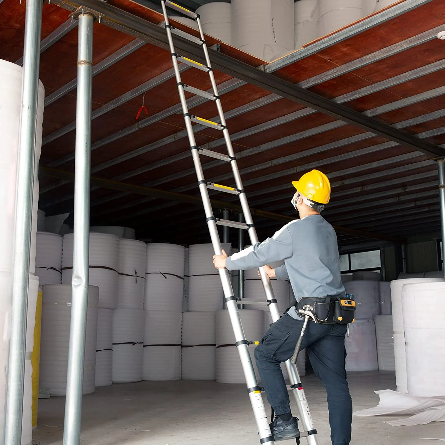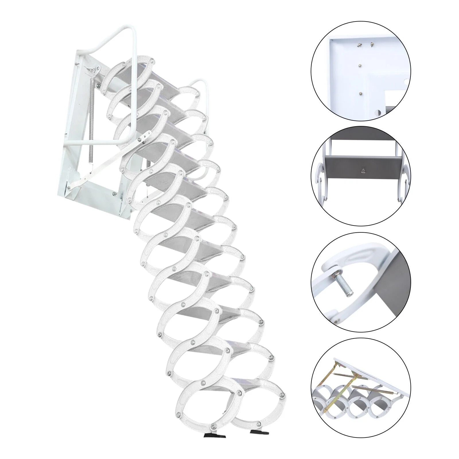 CNCEST Wall Mounted Telescopic Ladder Foldable Stairs Attic Step Ladder 12 Steps 661lb