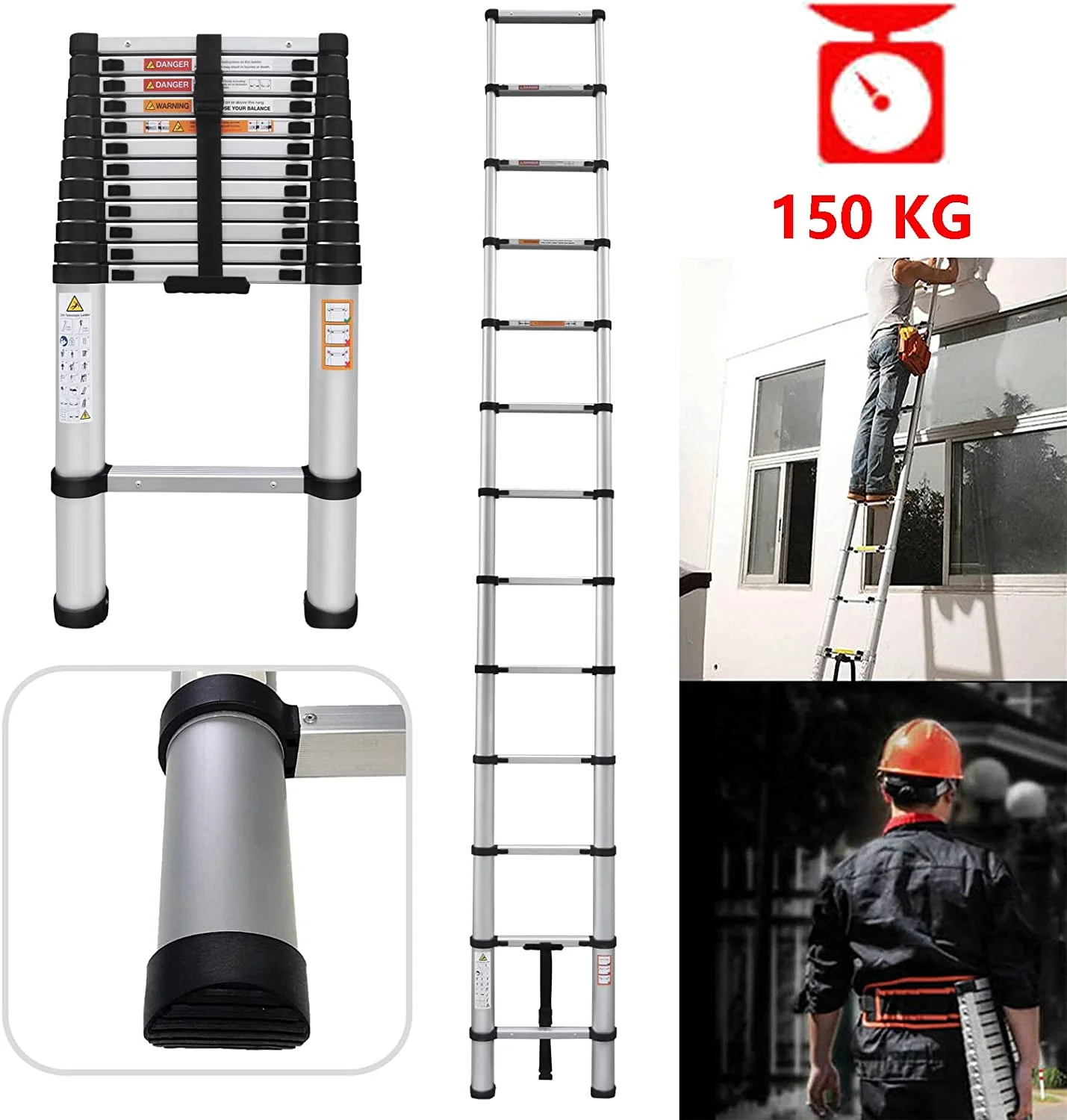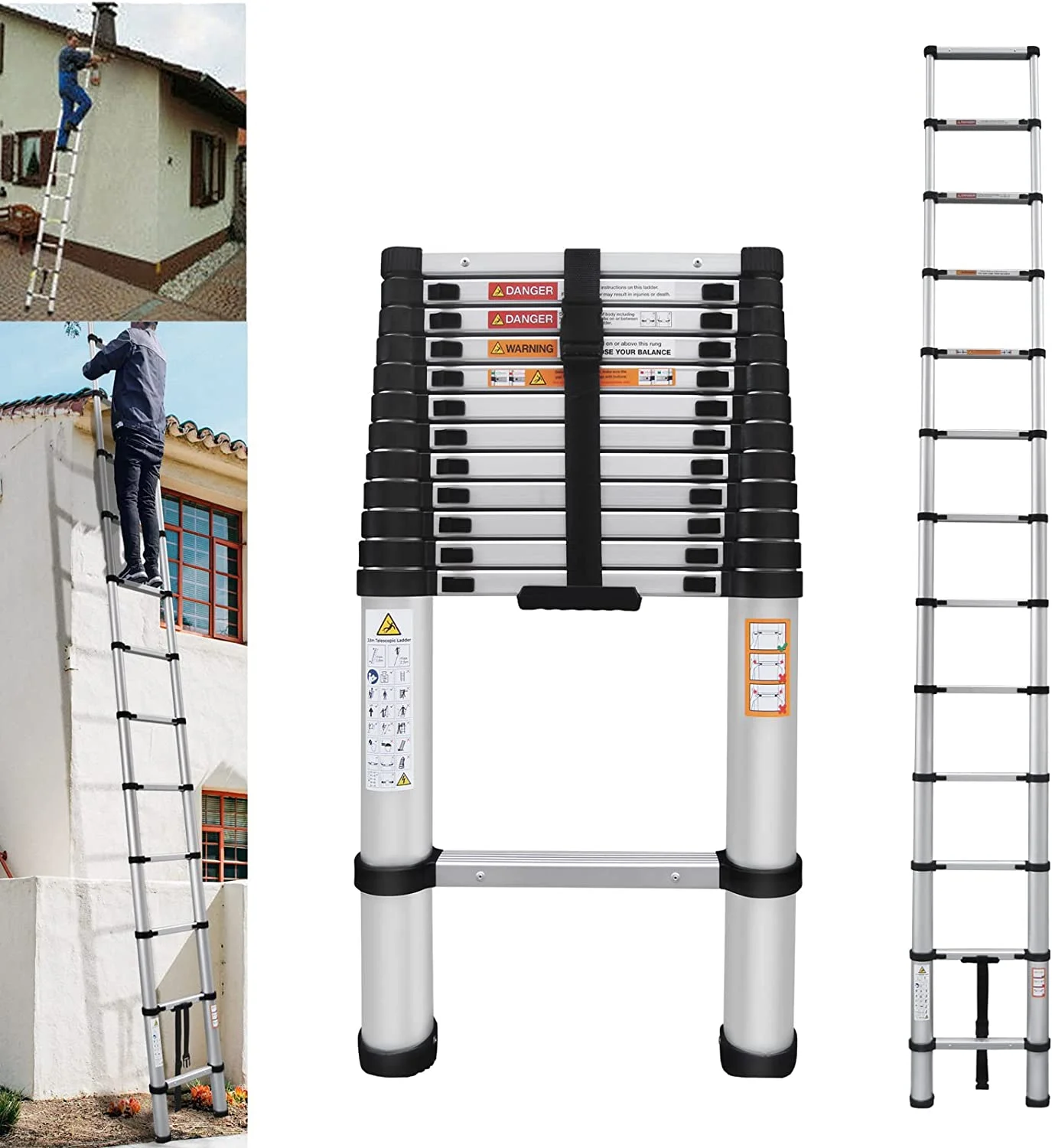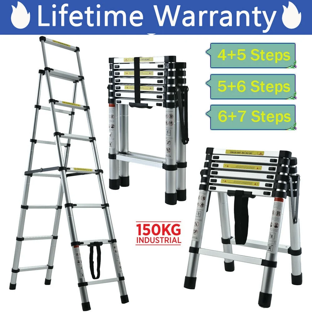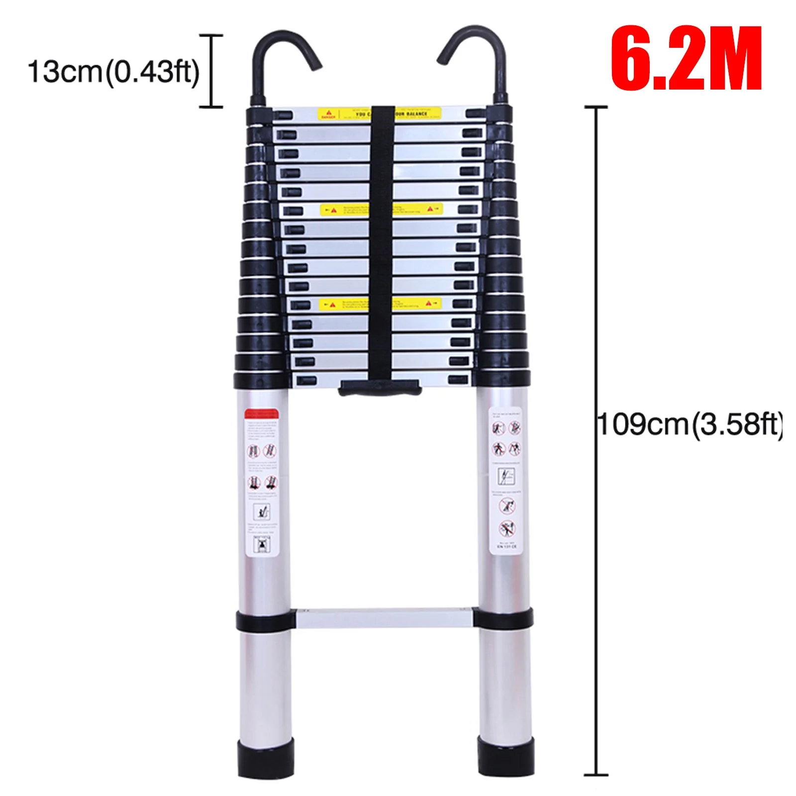 Telescoping Ladder 6.2M/20ft Aluminum Extension Folding Ladder with 2 Hooks SALE