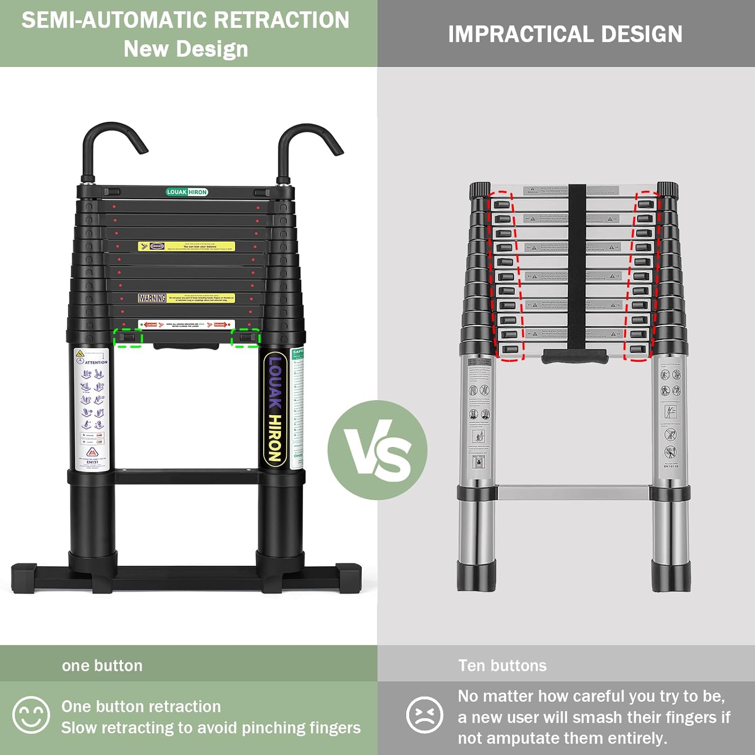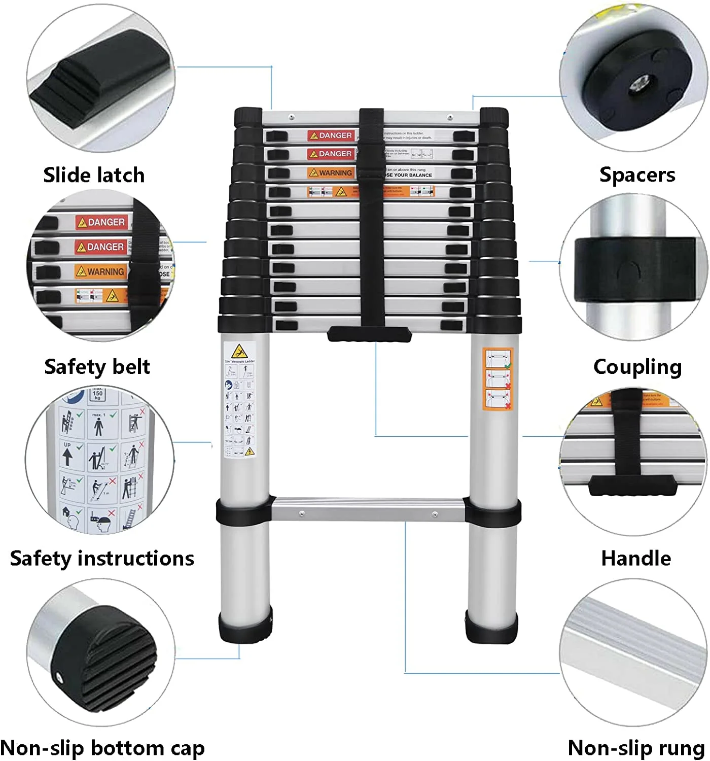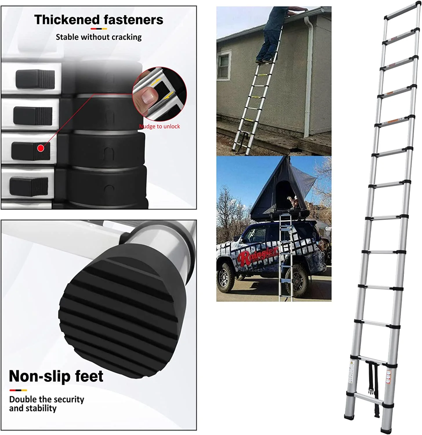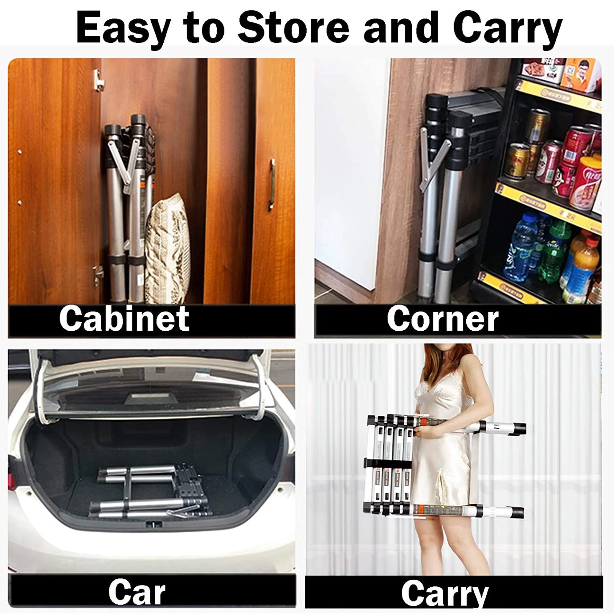 Telescoping Ladder 6.2M/20ft Aluminum Extension Folding Ladder with 2 Hooks SALE