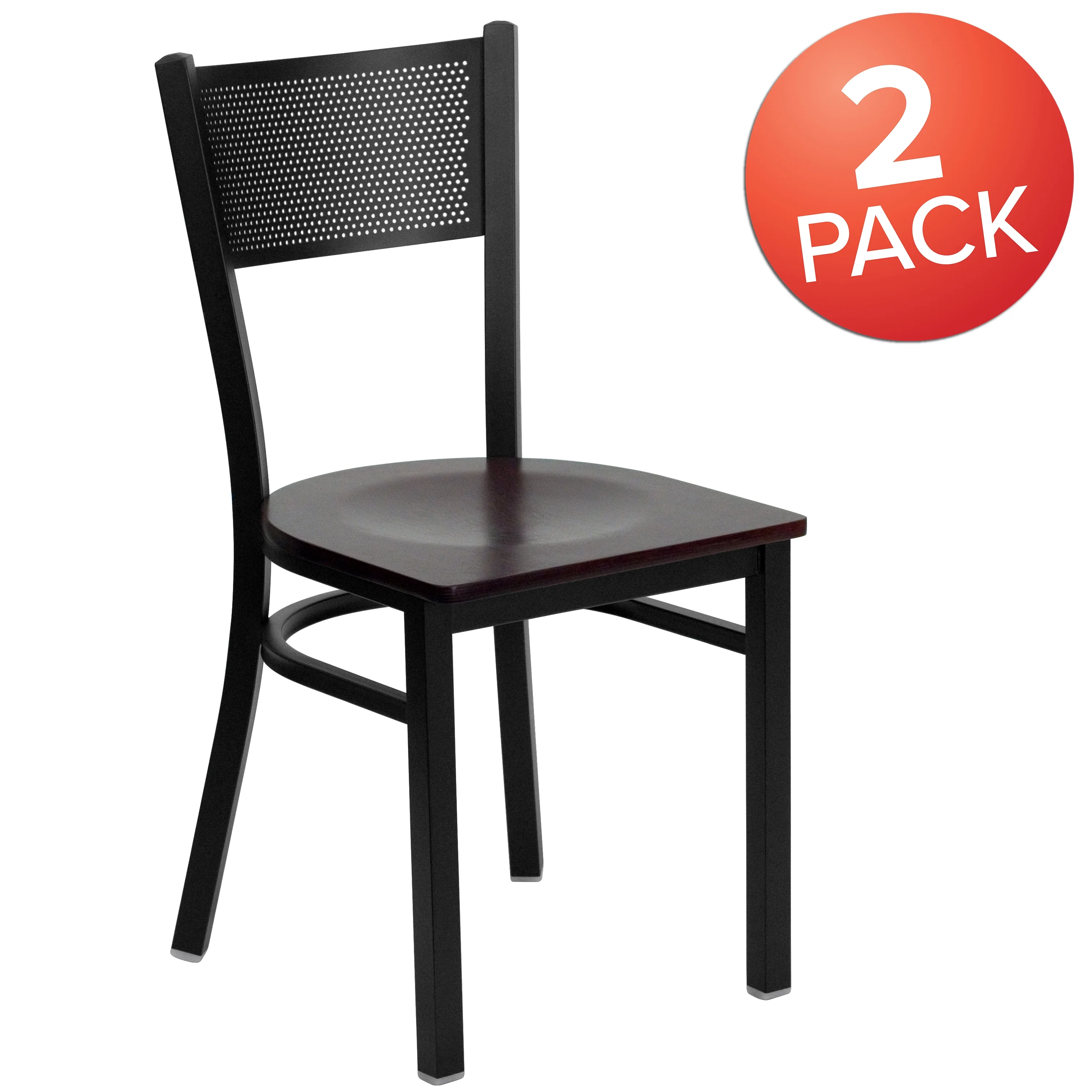 Flash Furniture 2 Pk. HERCULES Series Black Grid Back Metal Restaurant Chair - Mahogany Wood Seat