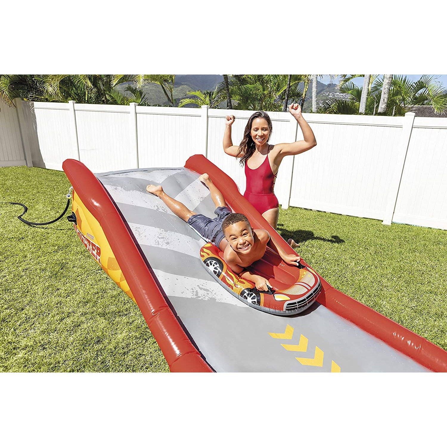 Intex - Inflatable Slide Mat, 18' 5'' X 3' 11'' x 2' 6'', Includes 2 Surfboards, Red