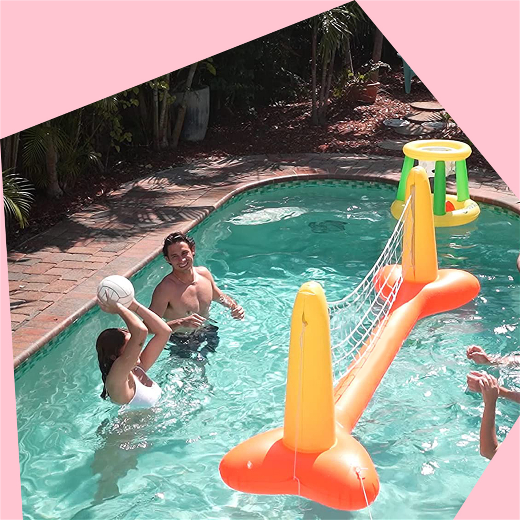 Inflatable Pool Volleyball Set and Pool Basketball Hoop