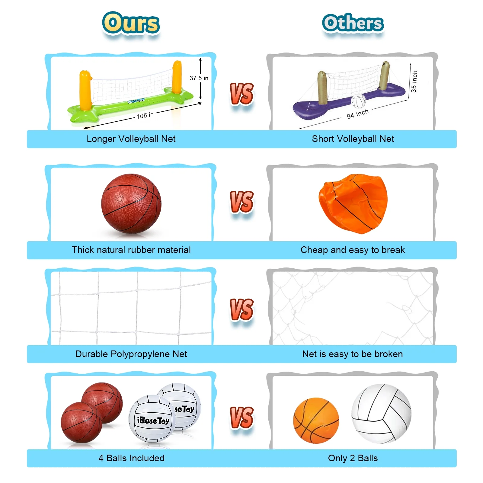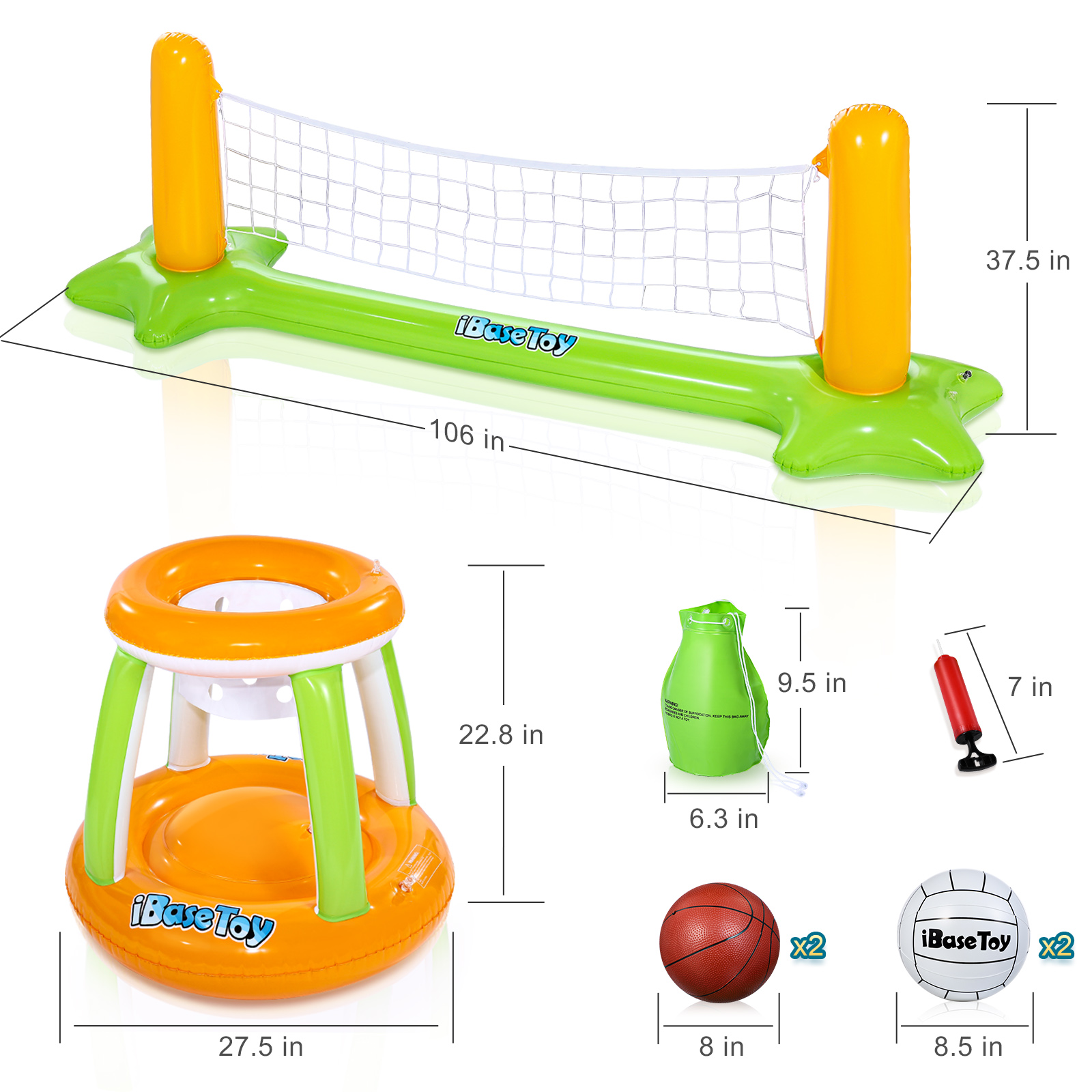 Apepal Christmas Gifts Toys Inflatable Pool Float Set Volleyball Net And Basketball Hoops Floating Pool Swimming Game Toys Water Inflatable Sports Set For Kids