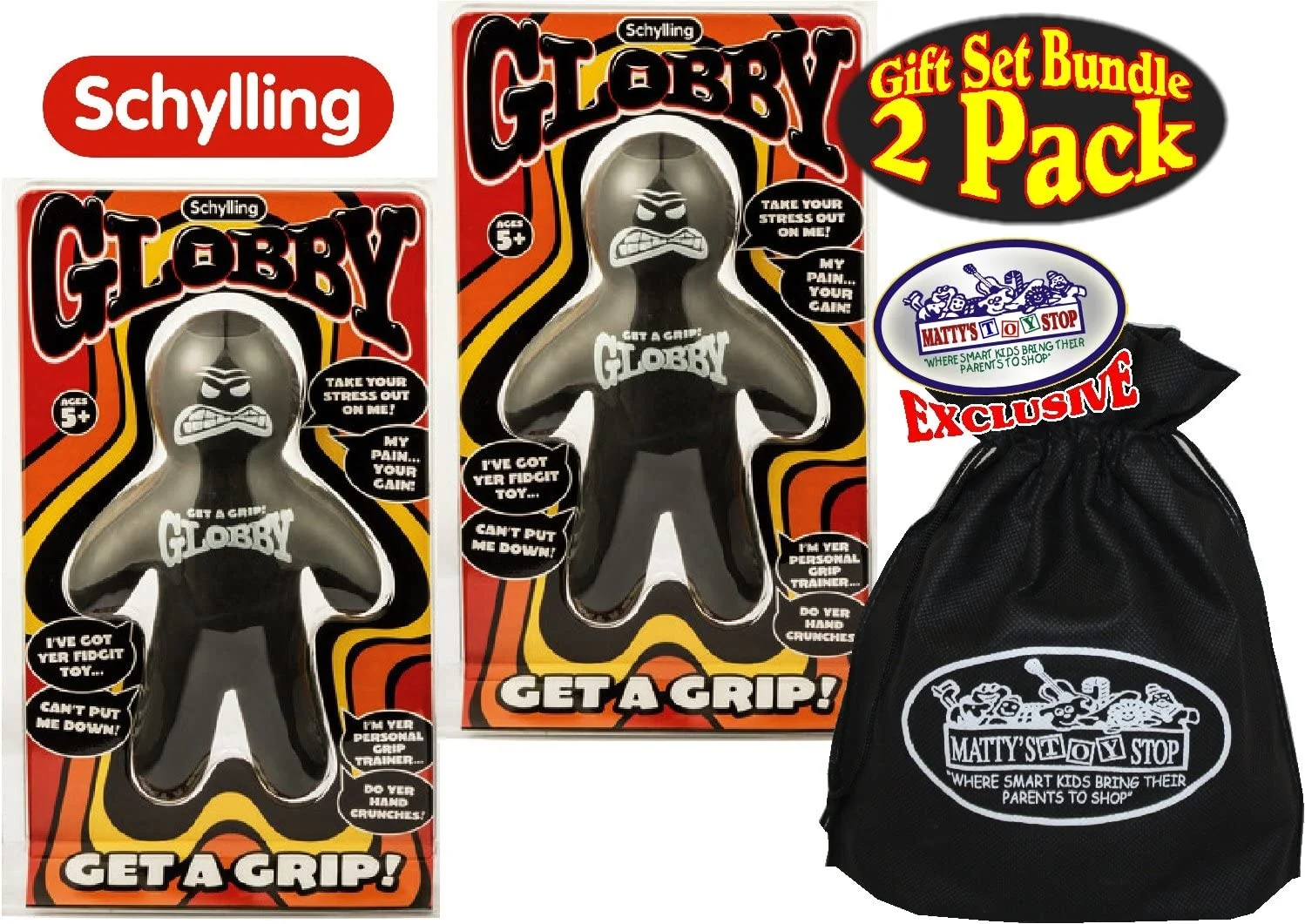 Schylling Globby Guy (Get A Grip & Stretch to Remove Stress) Gift Set Bundle with Exclusive Matty's Toy Stop Storage Bag - 2 Pack