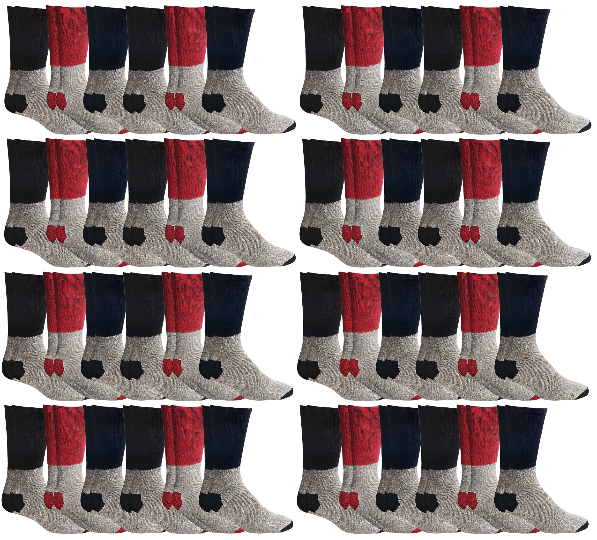 120 Pair Bulk Pack Of Mens Winter Thermal Camping Boot Socks, Cotton Tube or Crew Sock