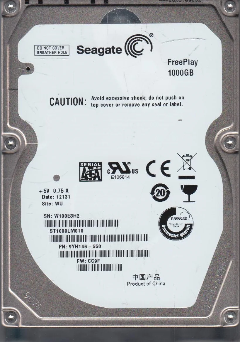 ST1000LM010, W10, WU, PN 9YH146-550, FW CC9F, Seagate 1TB SATA 2.5 Hard Drive