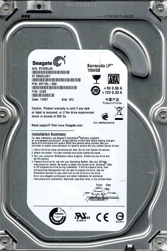 ST1000LM010, W2L, WU, PN 9YH146-550, FW CC9F, Seagate 1TB SATA 2.5 Hard Drive