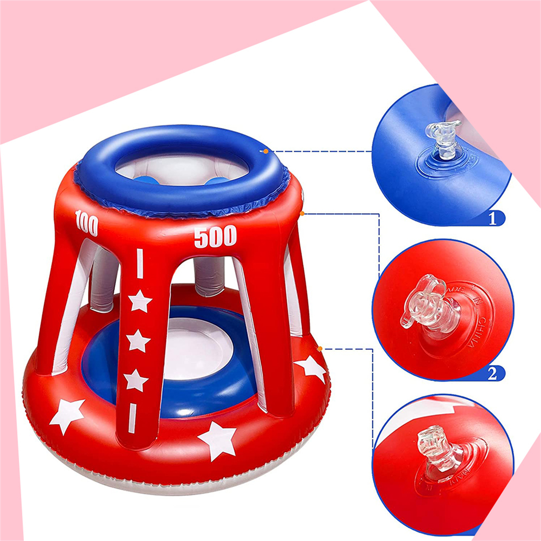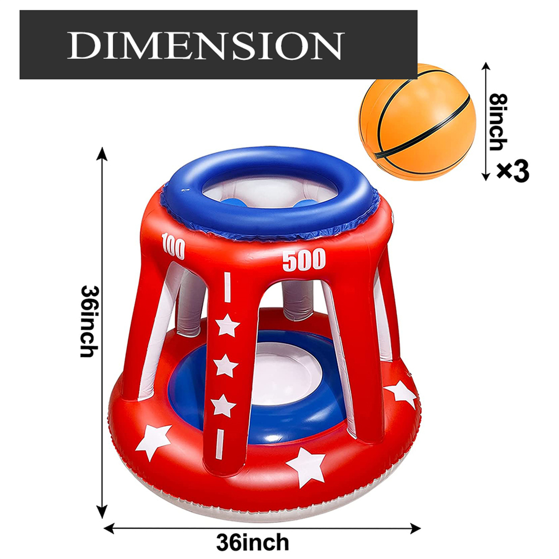 4 In 1 Set Giant Inflatable Pool Basketball Hoop with 3 Balls 6 Score Hole Swimming Pool Party Game