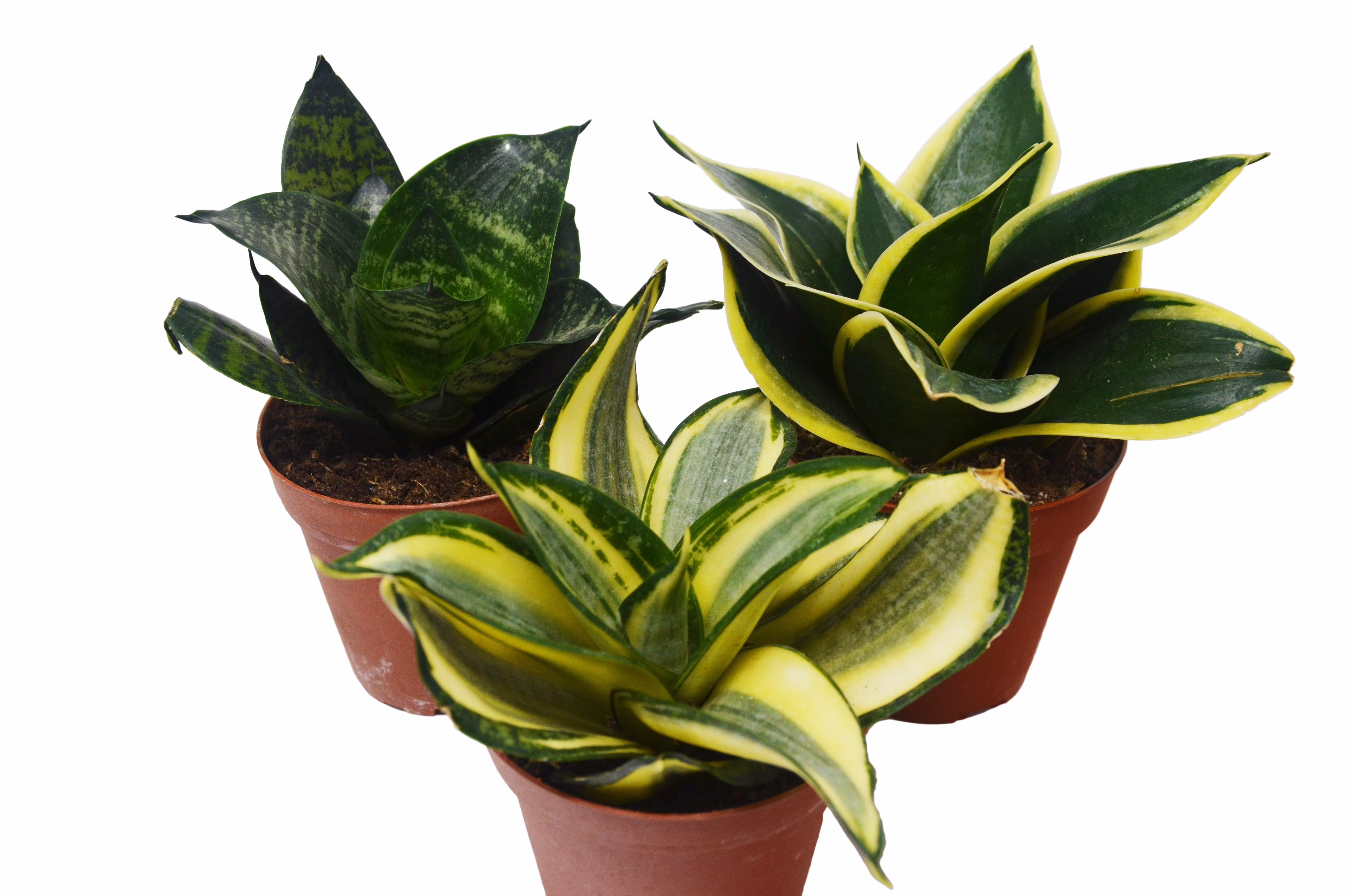 3 Different Snake Plants in 4" Pots - Sansevieria - Live Plant - FREE Care Guide