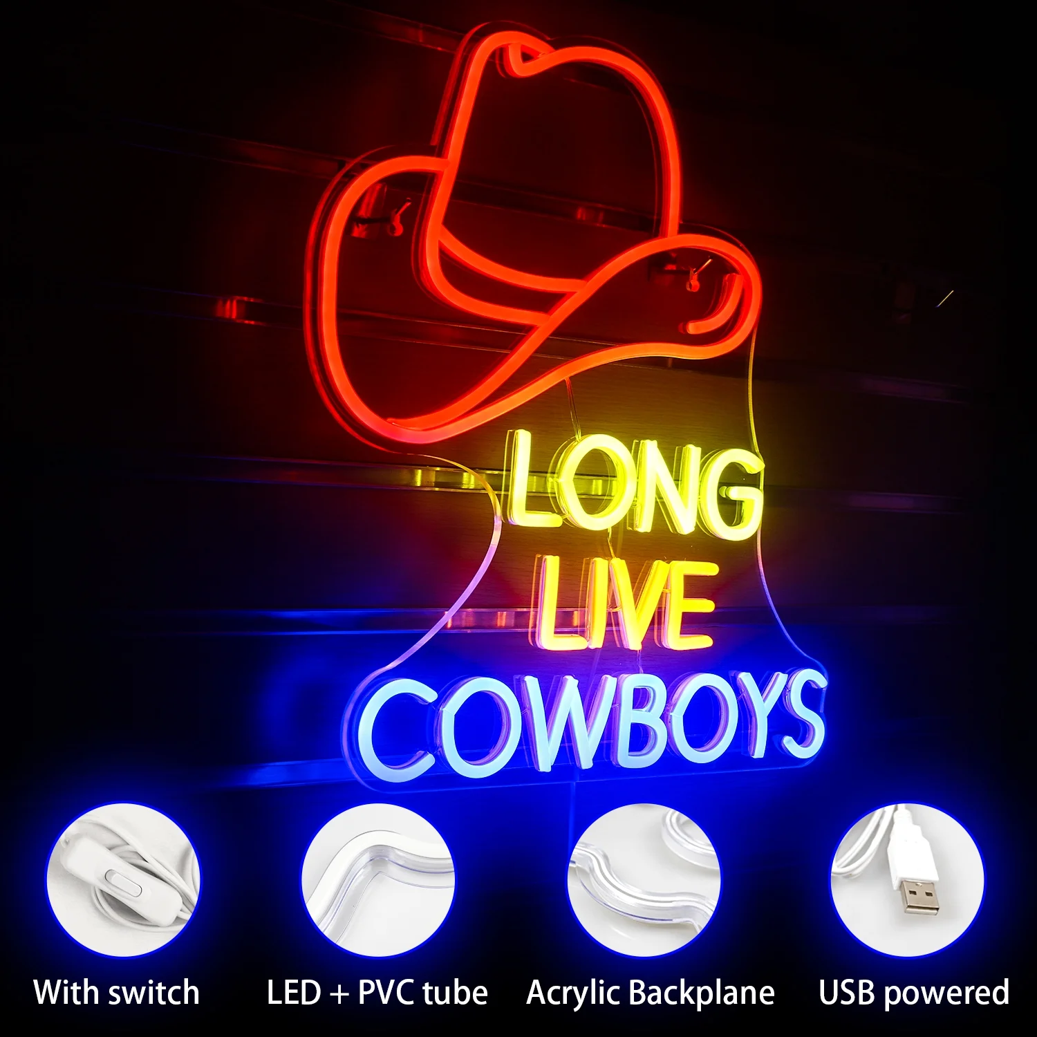 Hello Rosa Long Live Cowboys LED Neon Light Signs for Beer Bar Cafe Party Bedroom Home Decoration