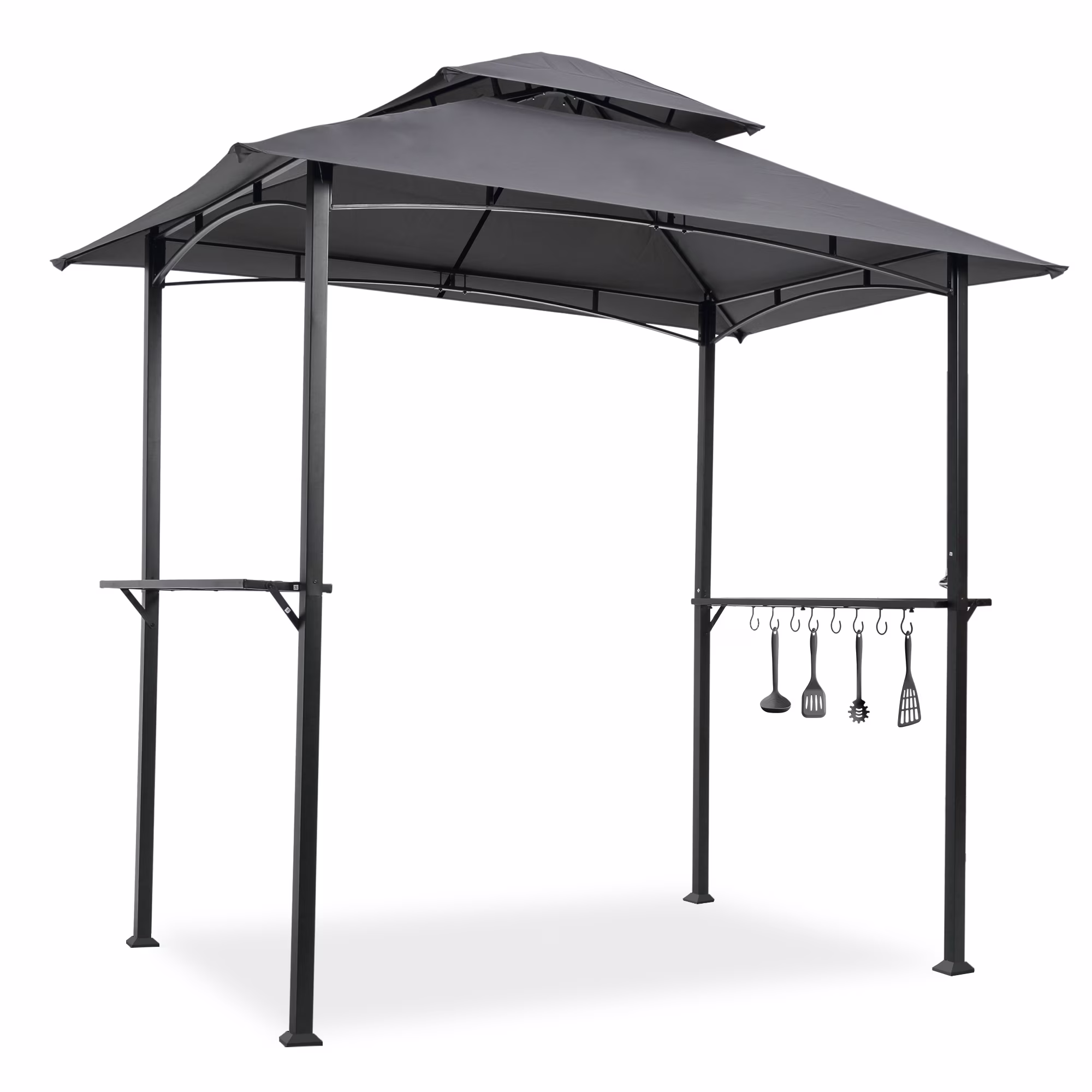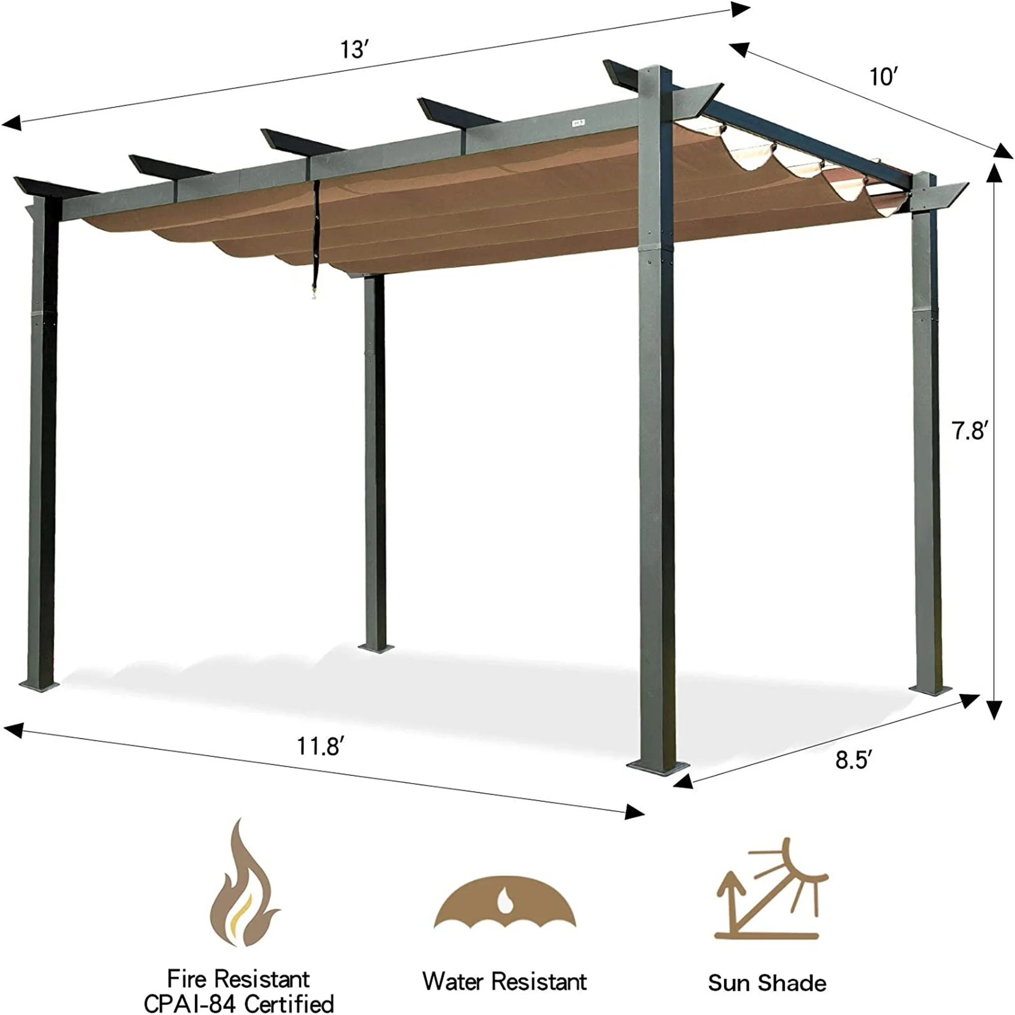 108.7 in. H Outdoor Patio Gazebo in Brown with Extended Side Shed and Awning and LED Light