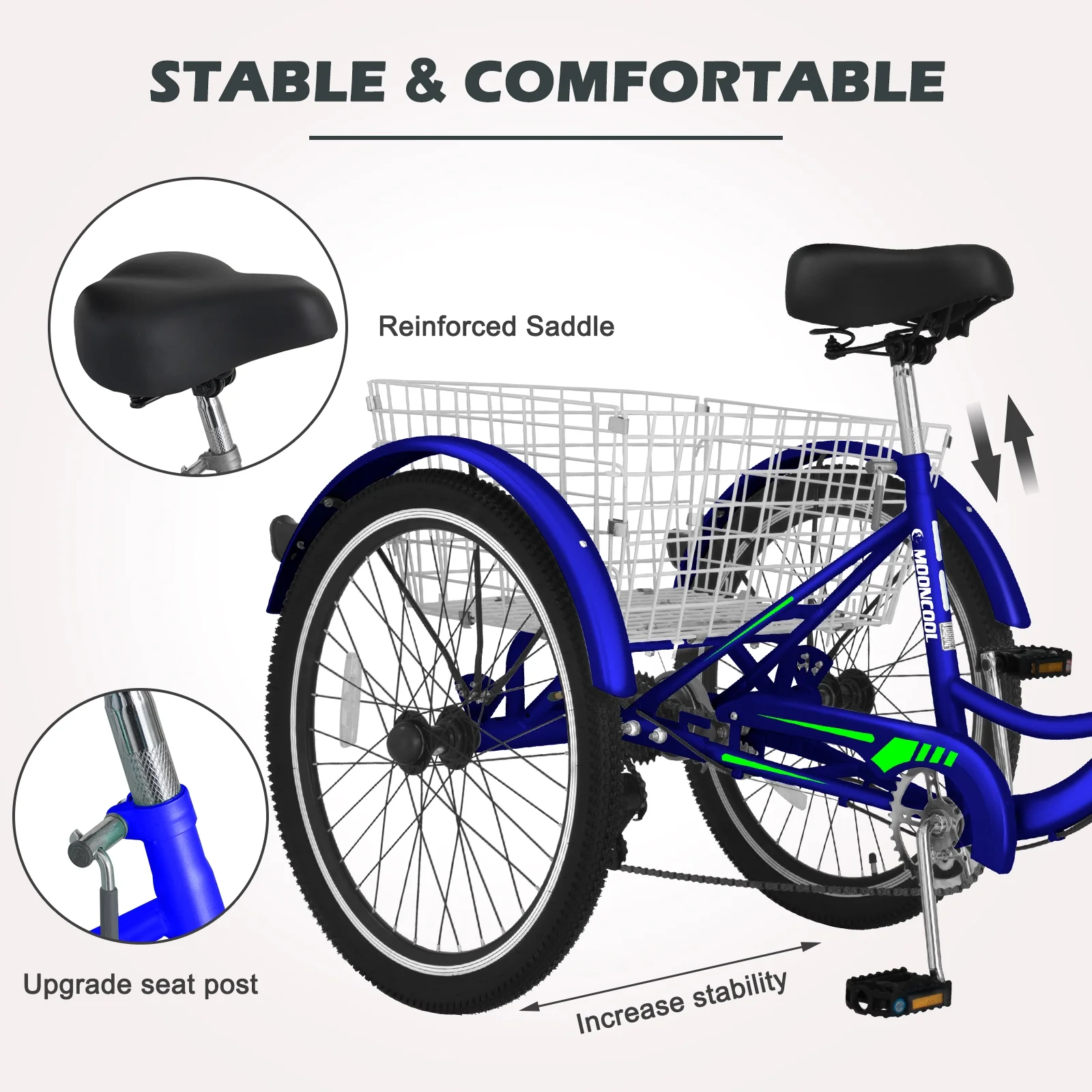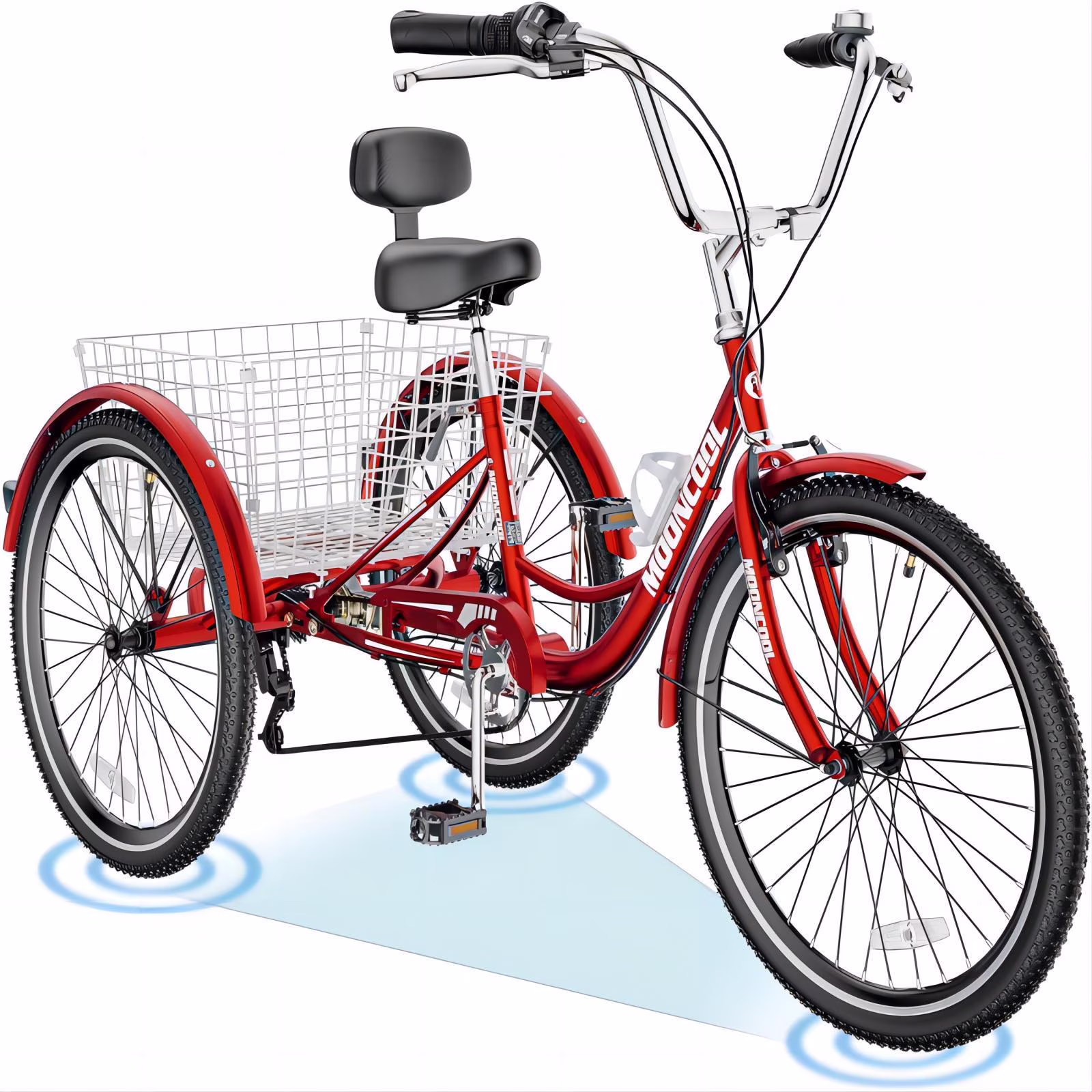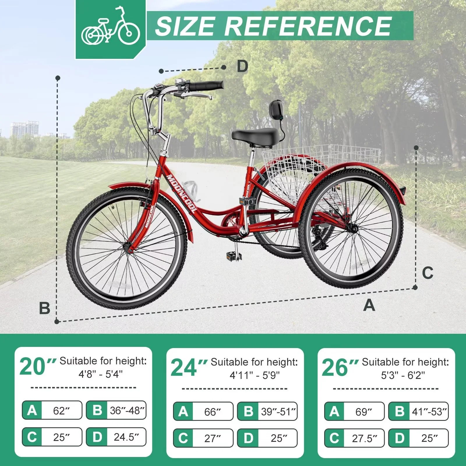 FICISOG 24" Adult Tricycle, 3 Wheel 7 Speed Bikes Cruise Trike with Shopping Basket, Unisex