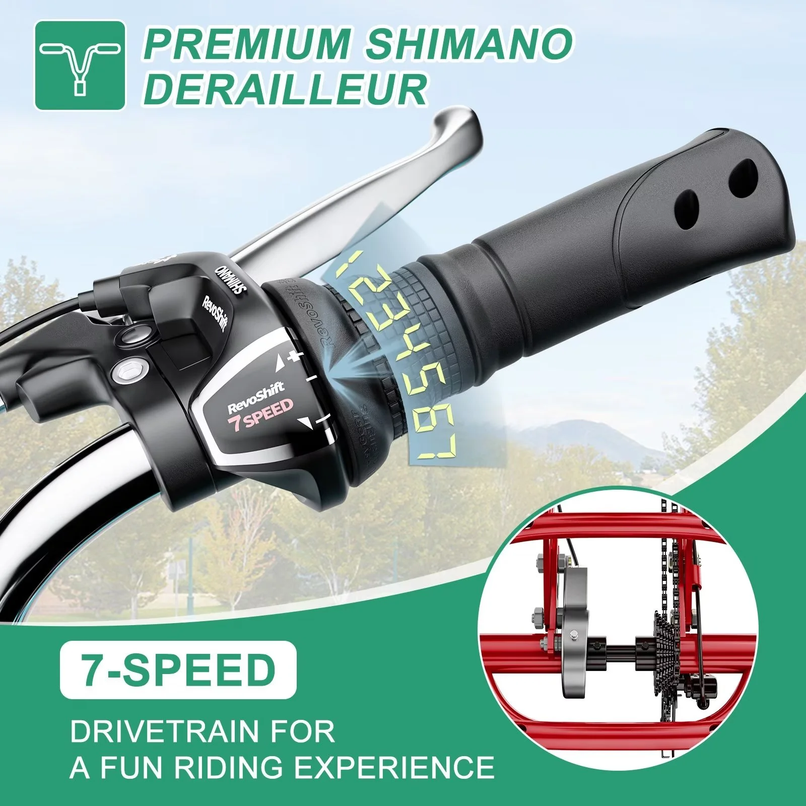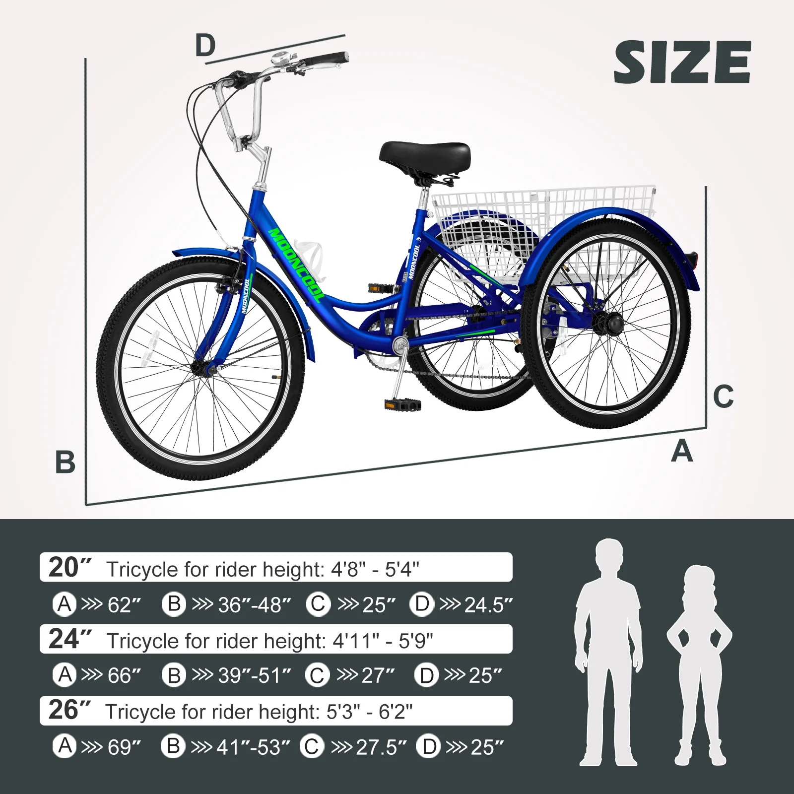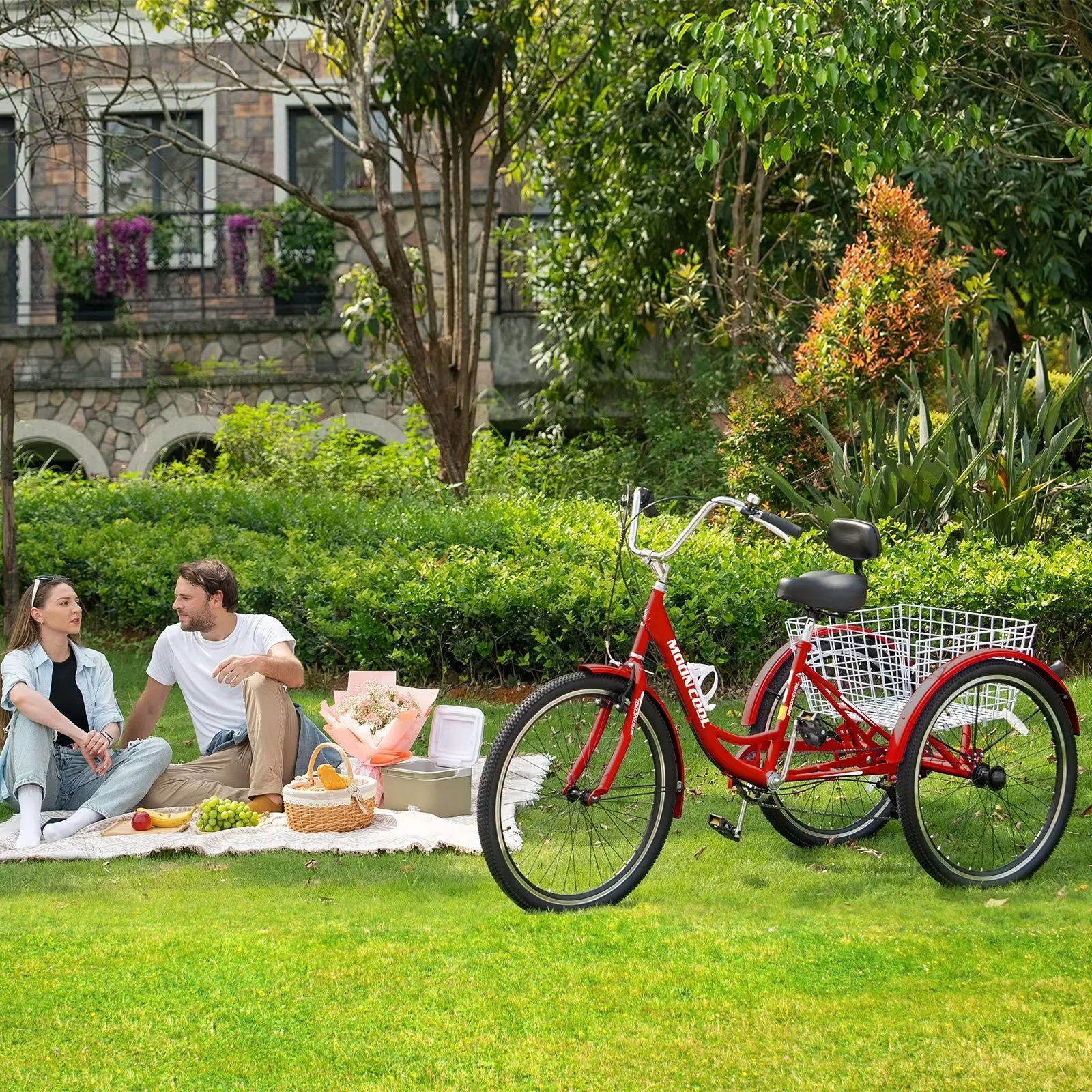 FICISOG 24" Adult Tricycle, 3 Wheel 7 Speed Bikes Cruise Trike with Shopping Basket, Unisex
