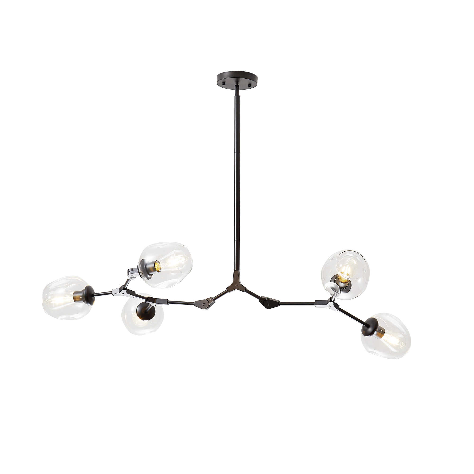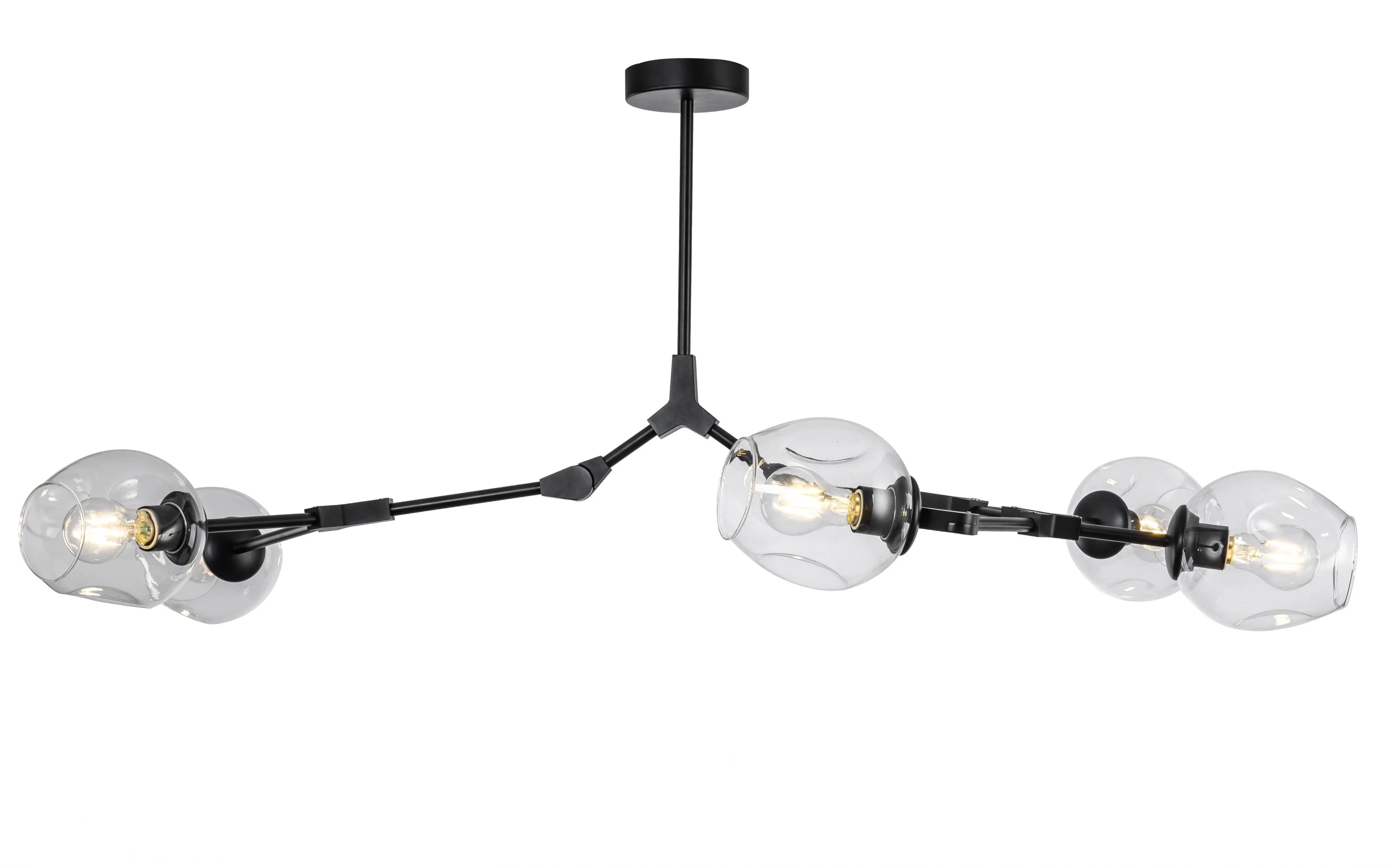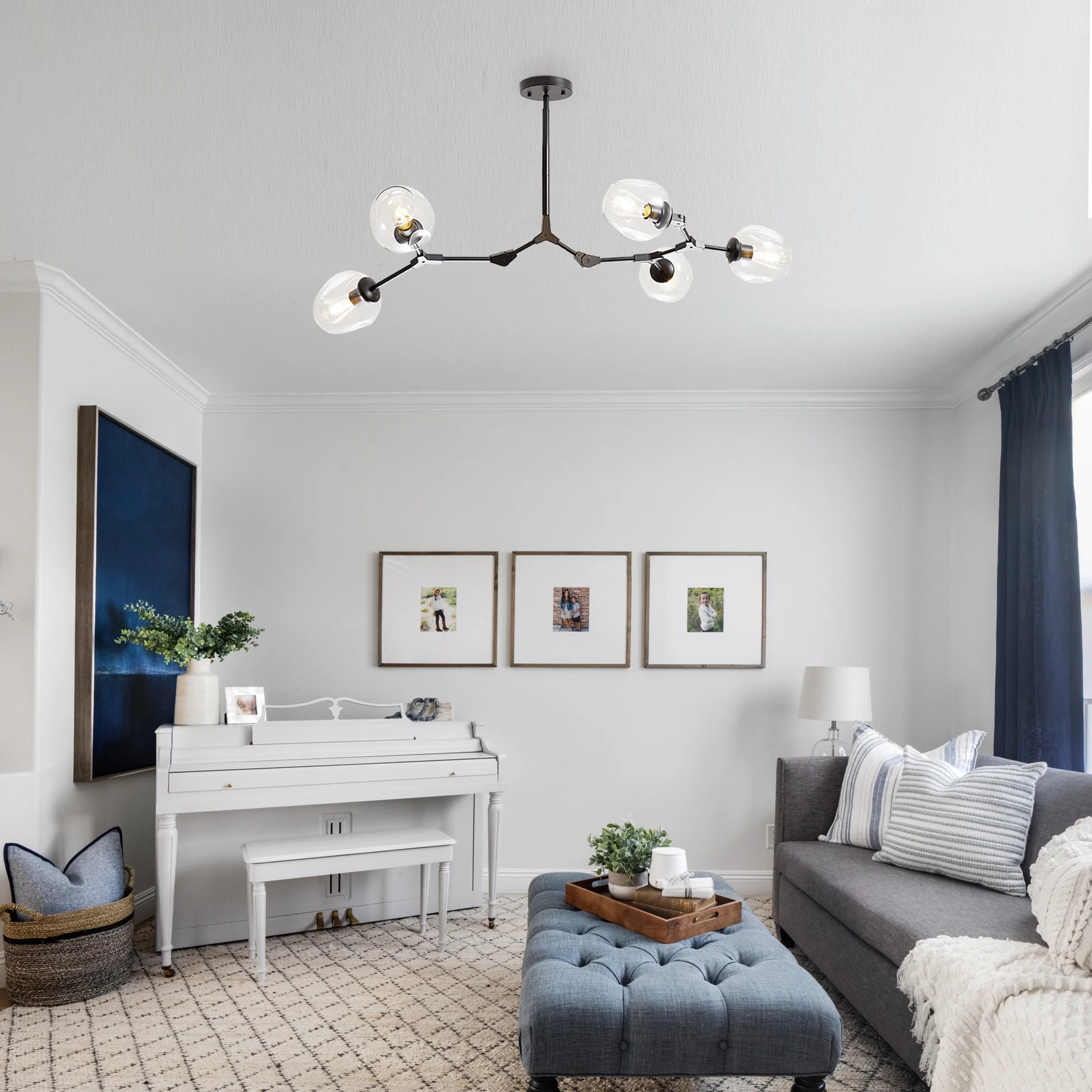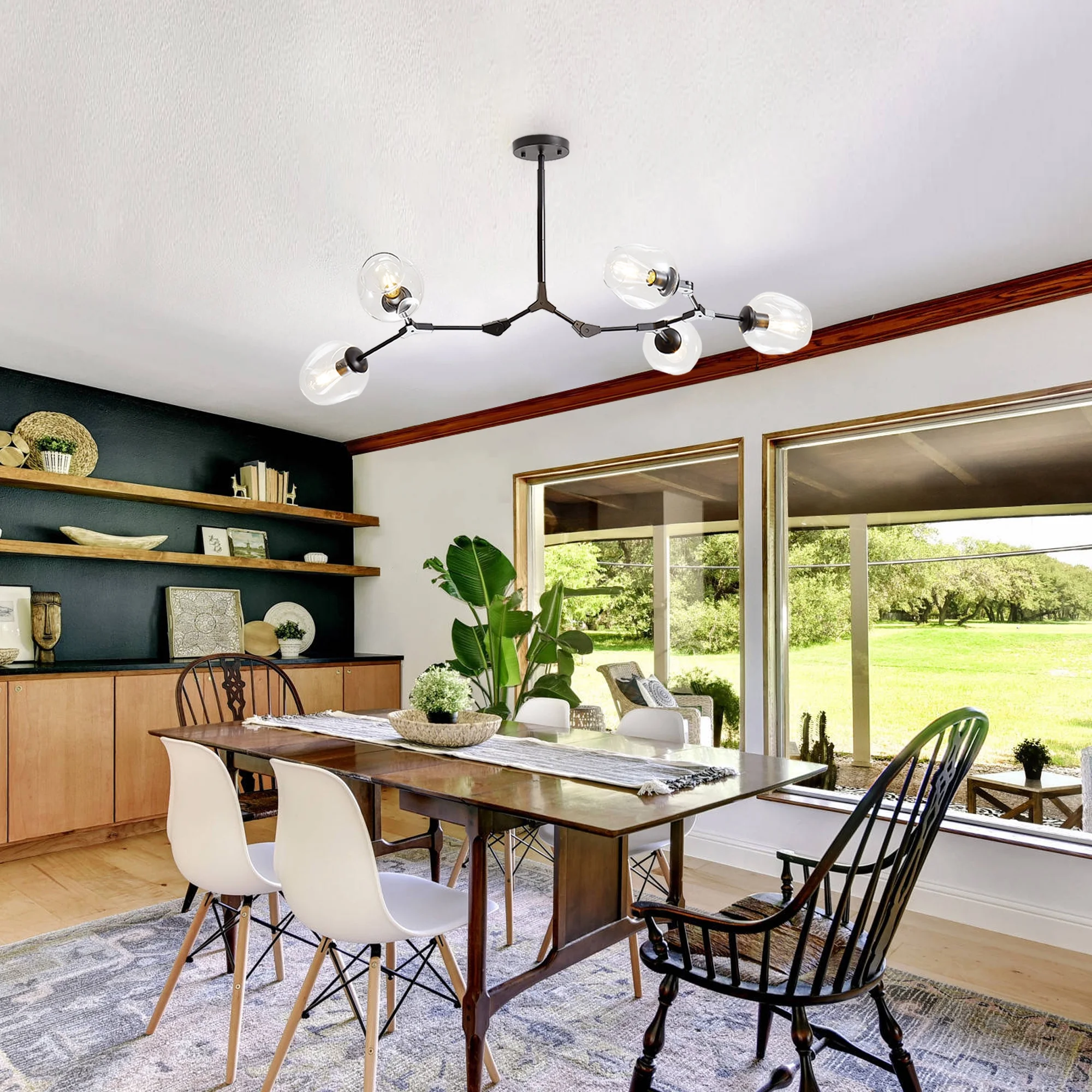Bella Depot 5-Light Clear Glass Sputnik Modern Linear Chandelier in Black Finish