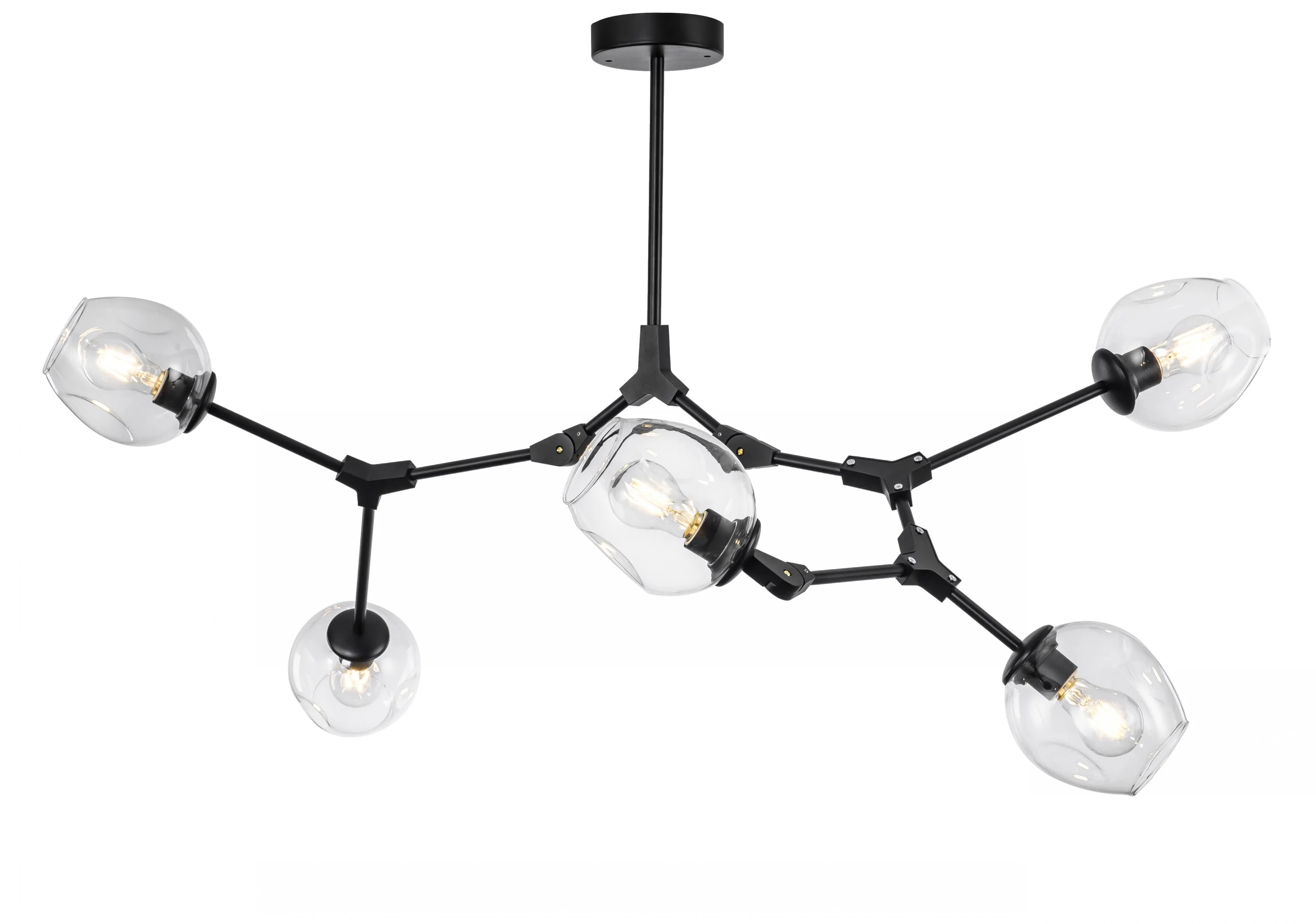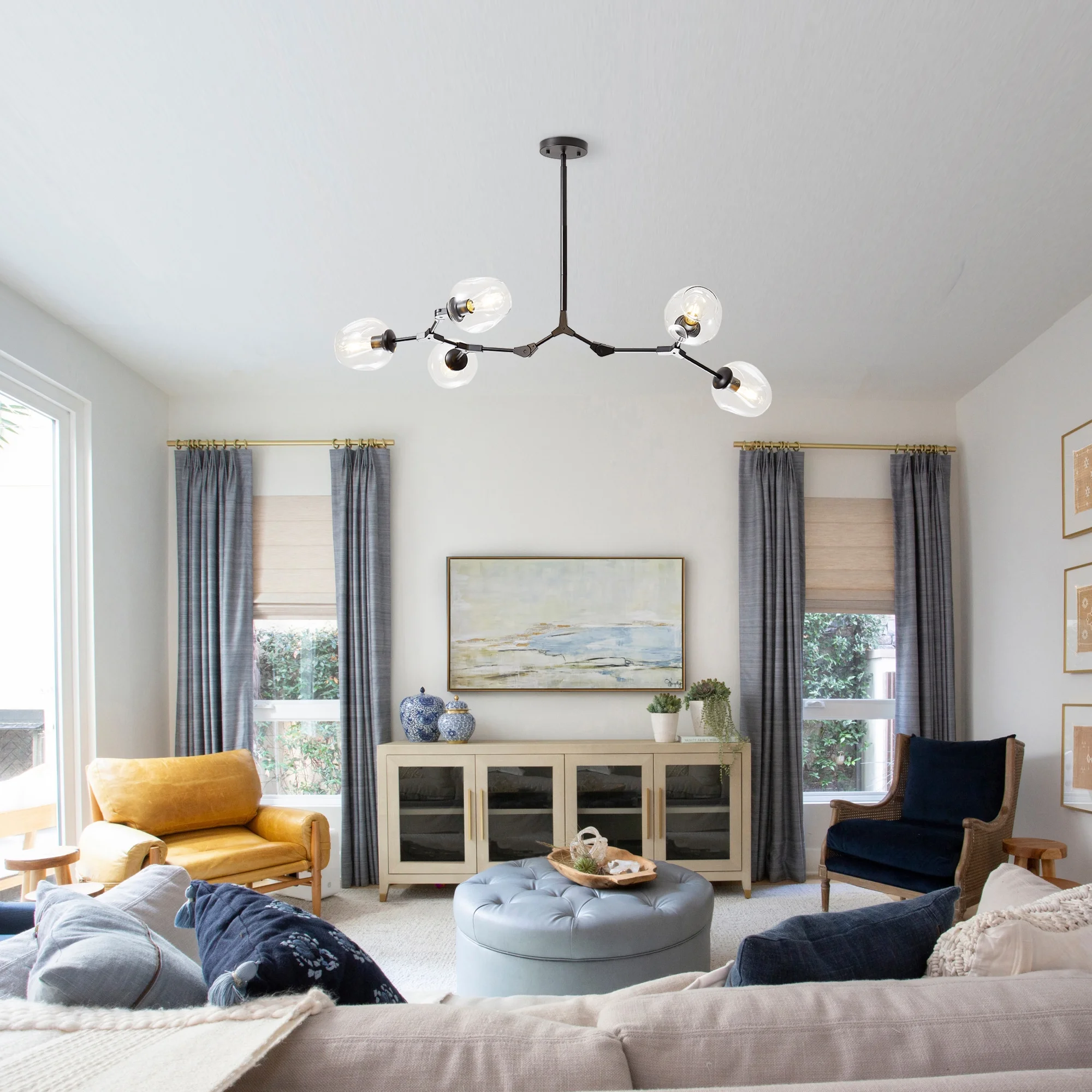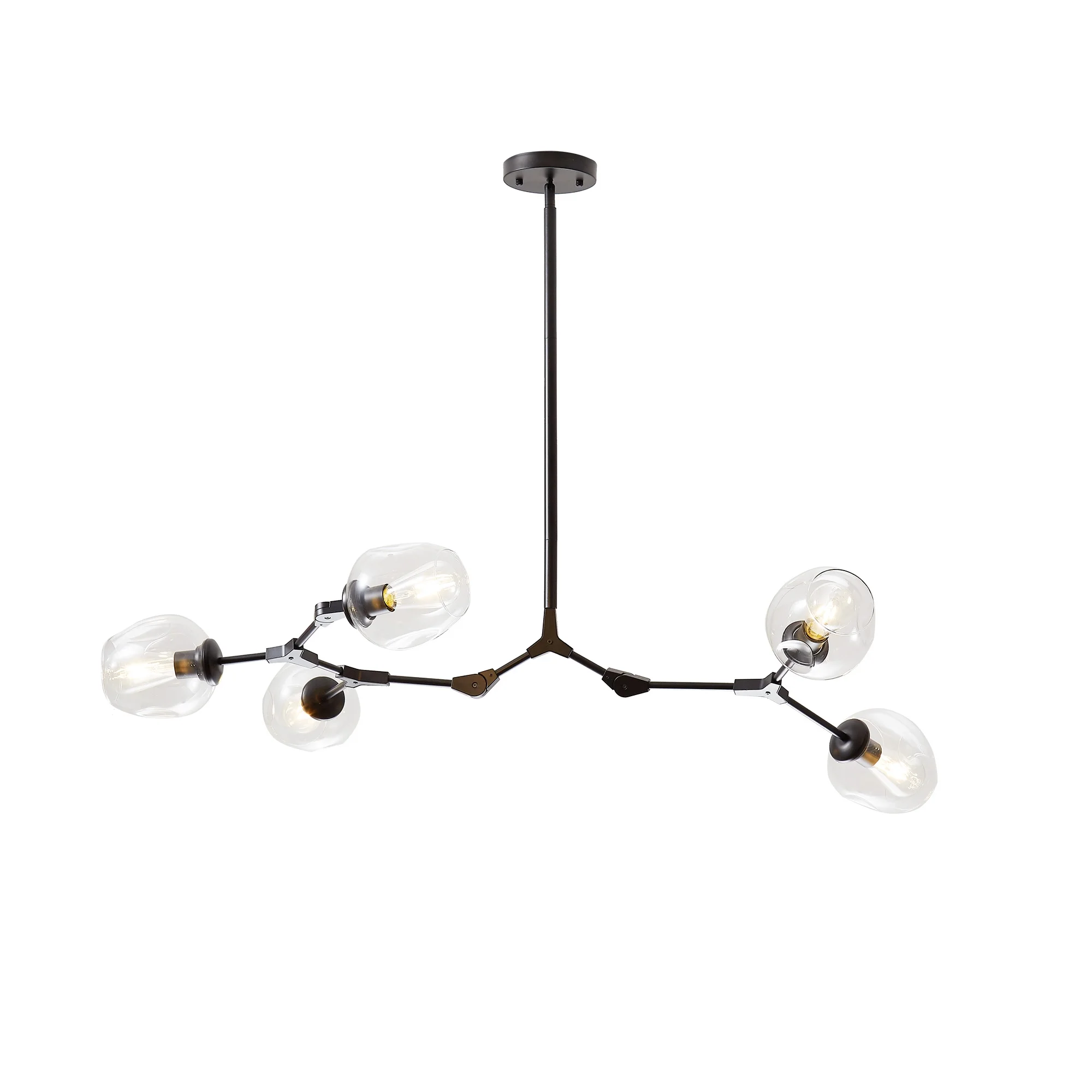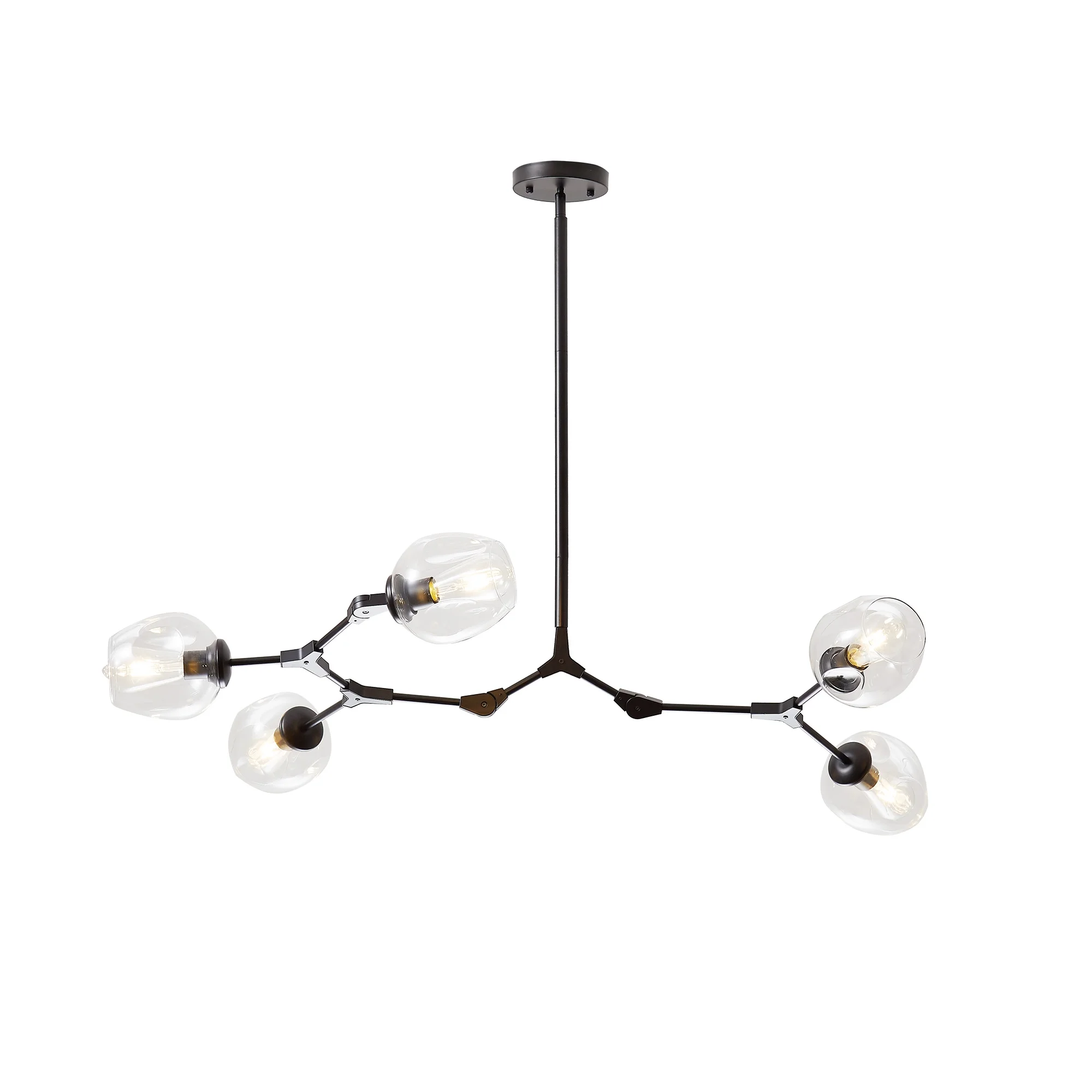 Bella Depot 5-Light Clear Glass Sputnik Modern Linear Chandelier in Black Finish