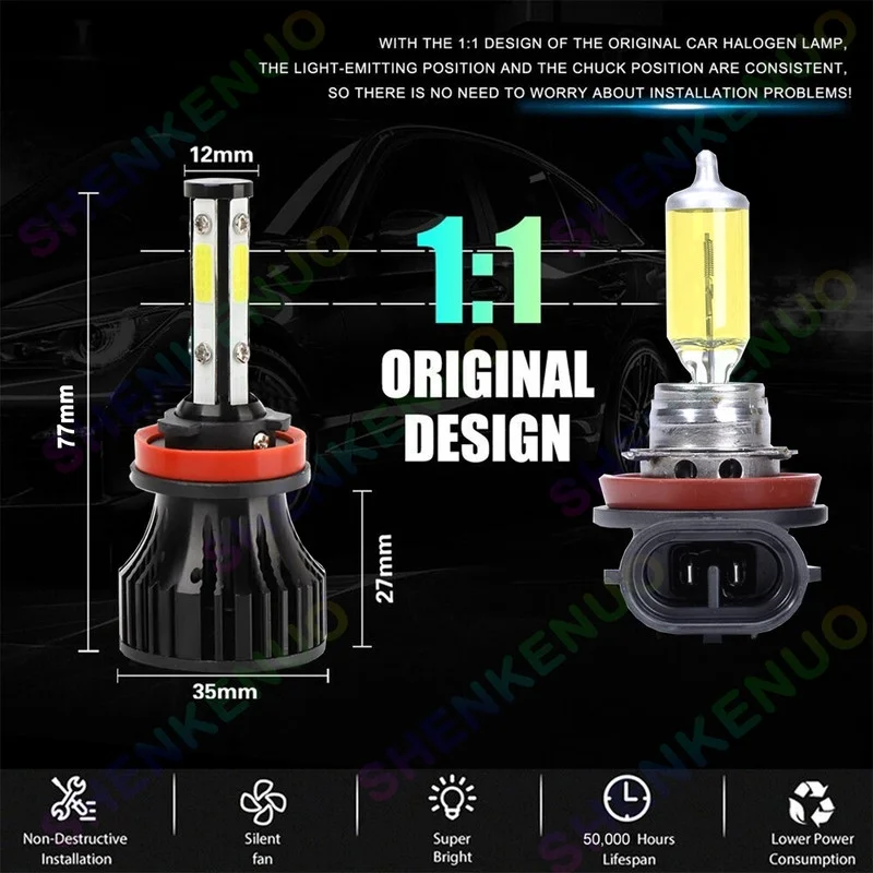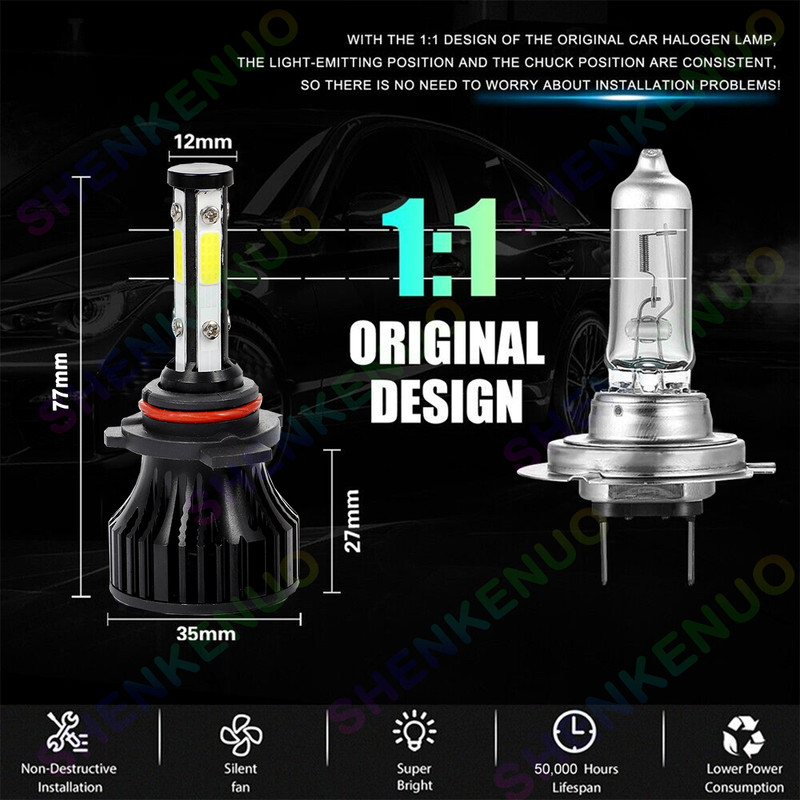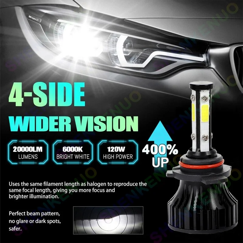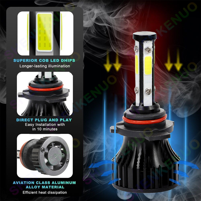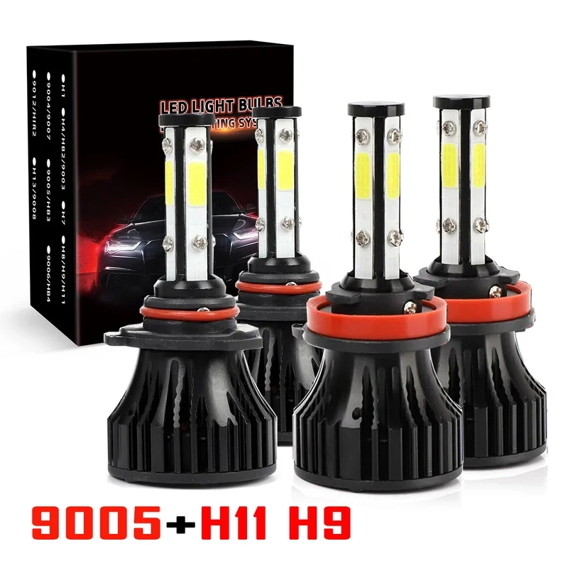 4-Side 9005 H11 High/Low Beam Headlights for Honda Civic 2014-2020 6000K White,4pc