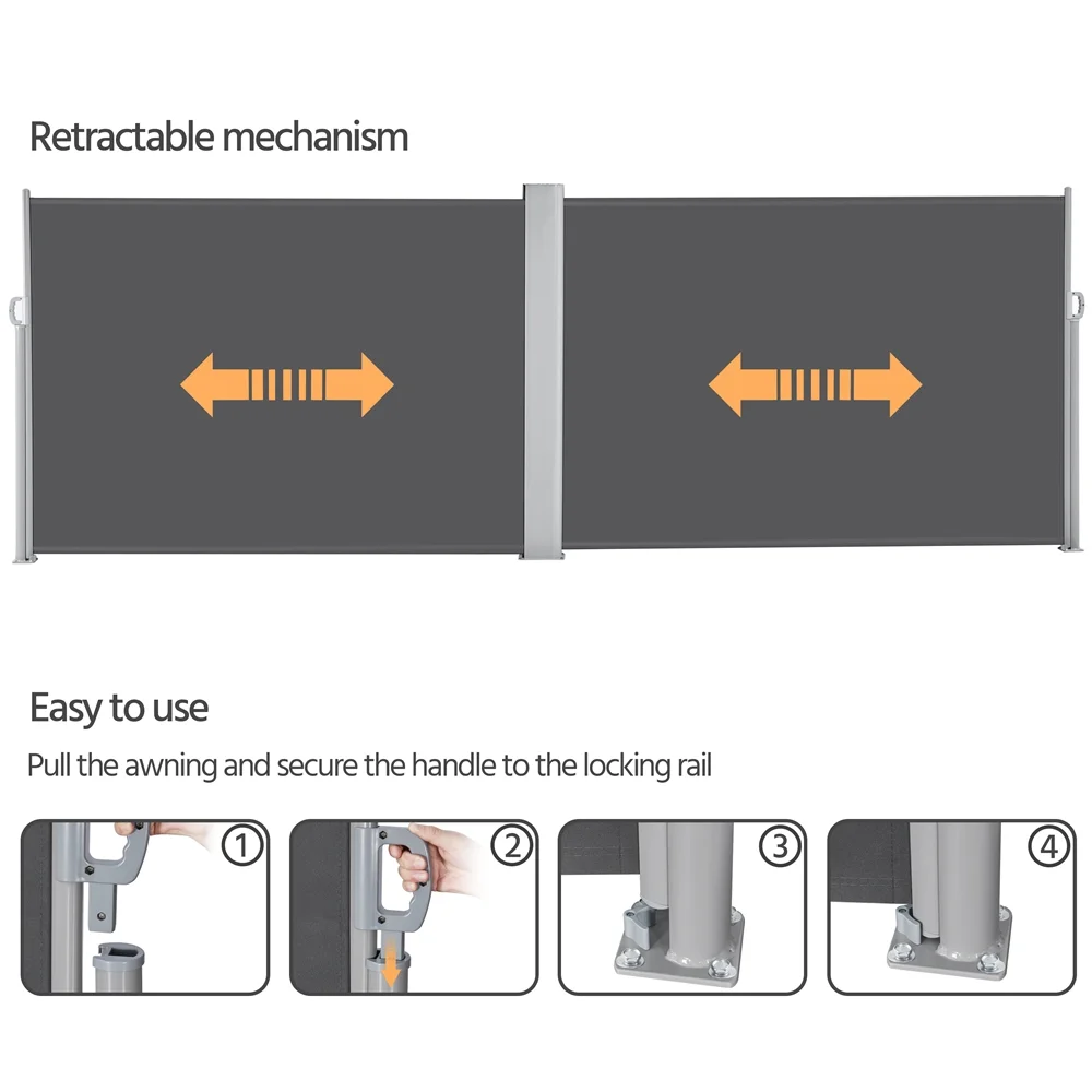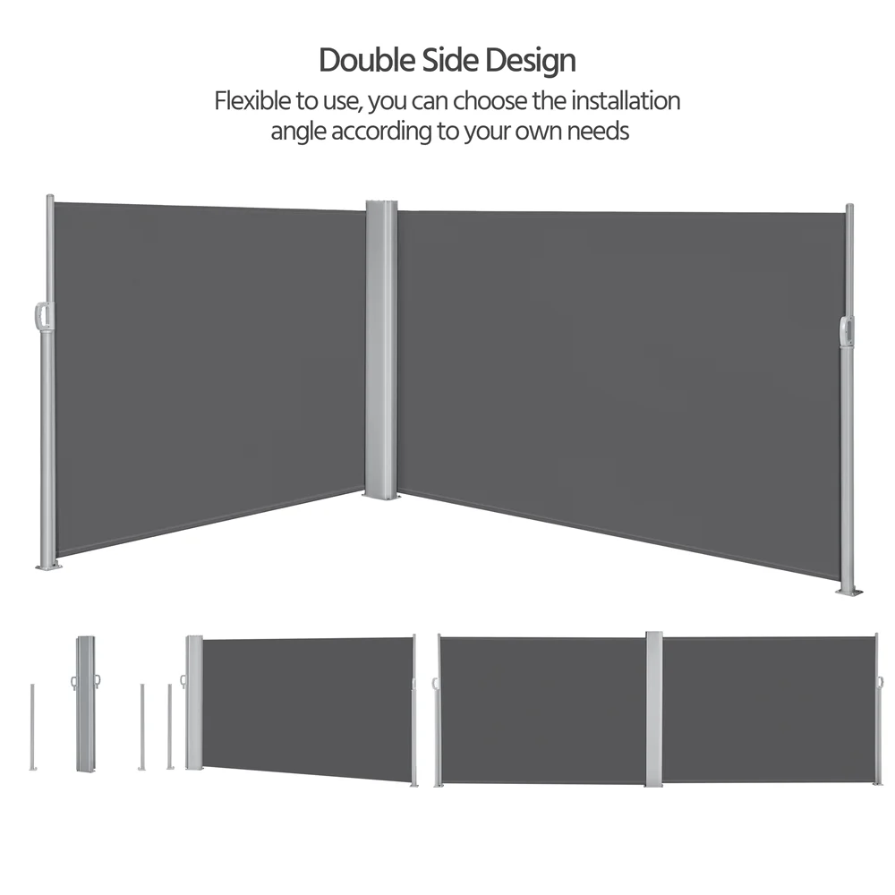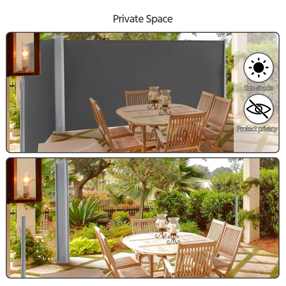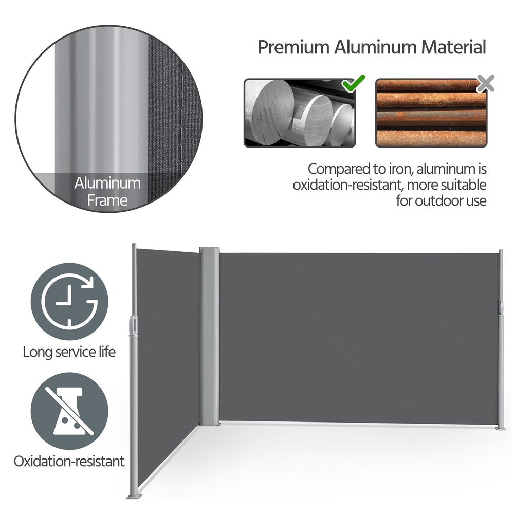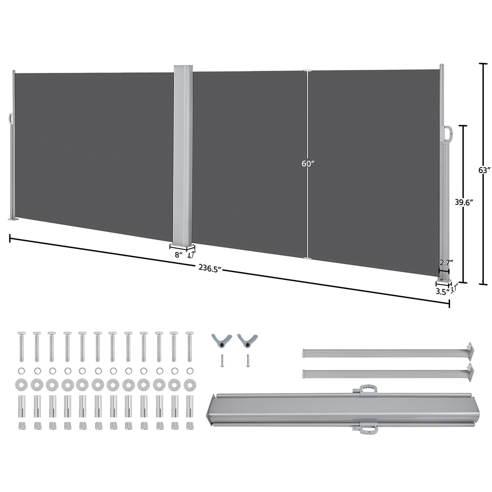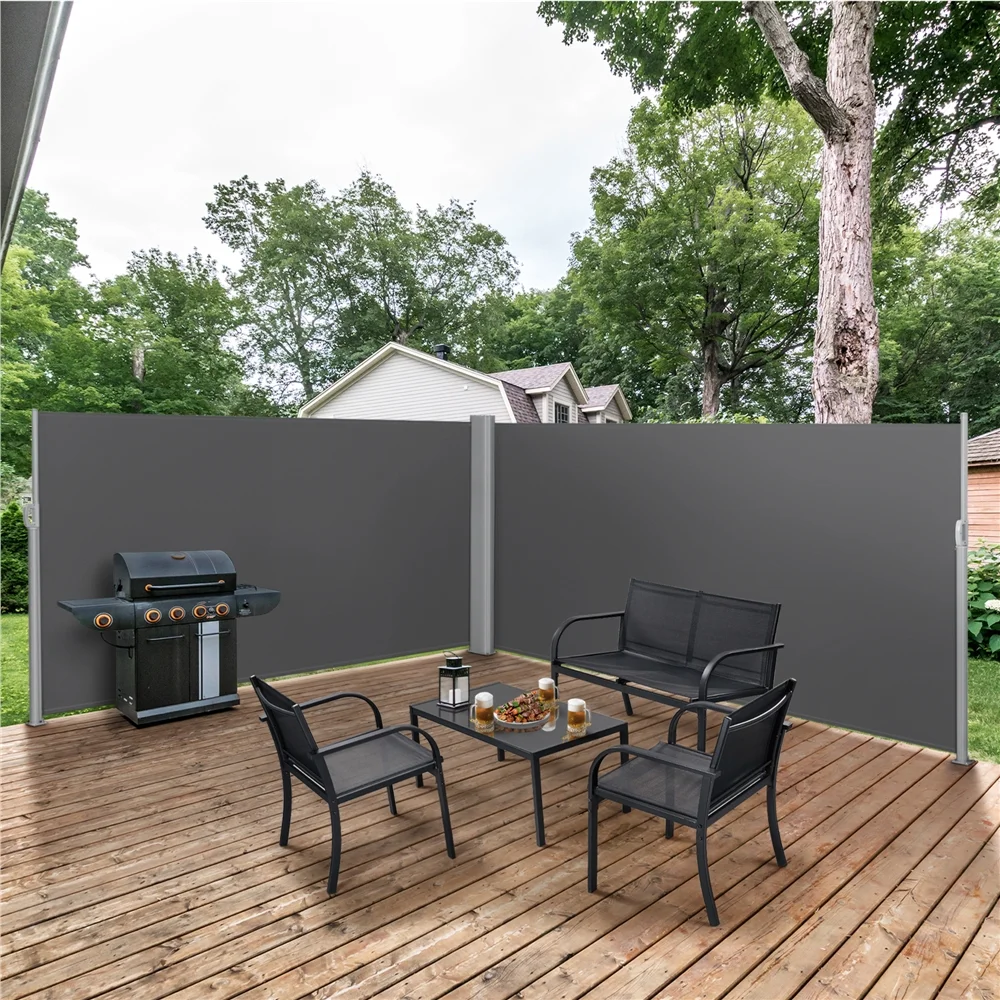 Topeakmart 19.7'L x 5.2'H Side Awning Double Retractable Screen for Patio Garden, Dark Gray