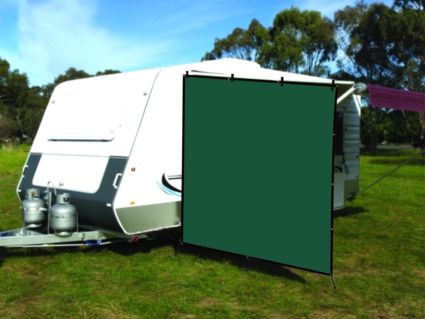 CAMWINGS RV Awning Privacy Screen Shade Panel Kit Side Sunblock Shade Drop 8 x 8ft, Dark Green