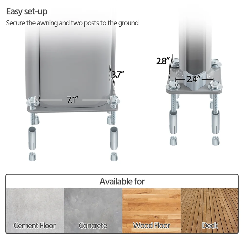 CAMWINGS RV Awning Privacy Screen Shade Panel Kit Sunblock Shade Drop 10 x 12ft, Grey