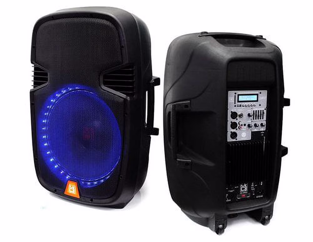 Mr. Dj PBX2159LB 12" 2-Way Portable Speaker with LED Accent Lighting, Built-In Bluetooth/USB/SD Card