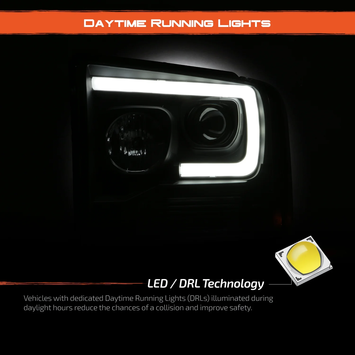 AKKON - Fits 2005-2007 Ford F250/350/450/550 Super Duty LED Module Projector Light Tube Headlights - Black