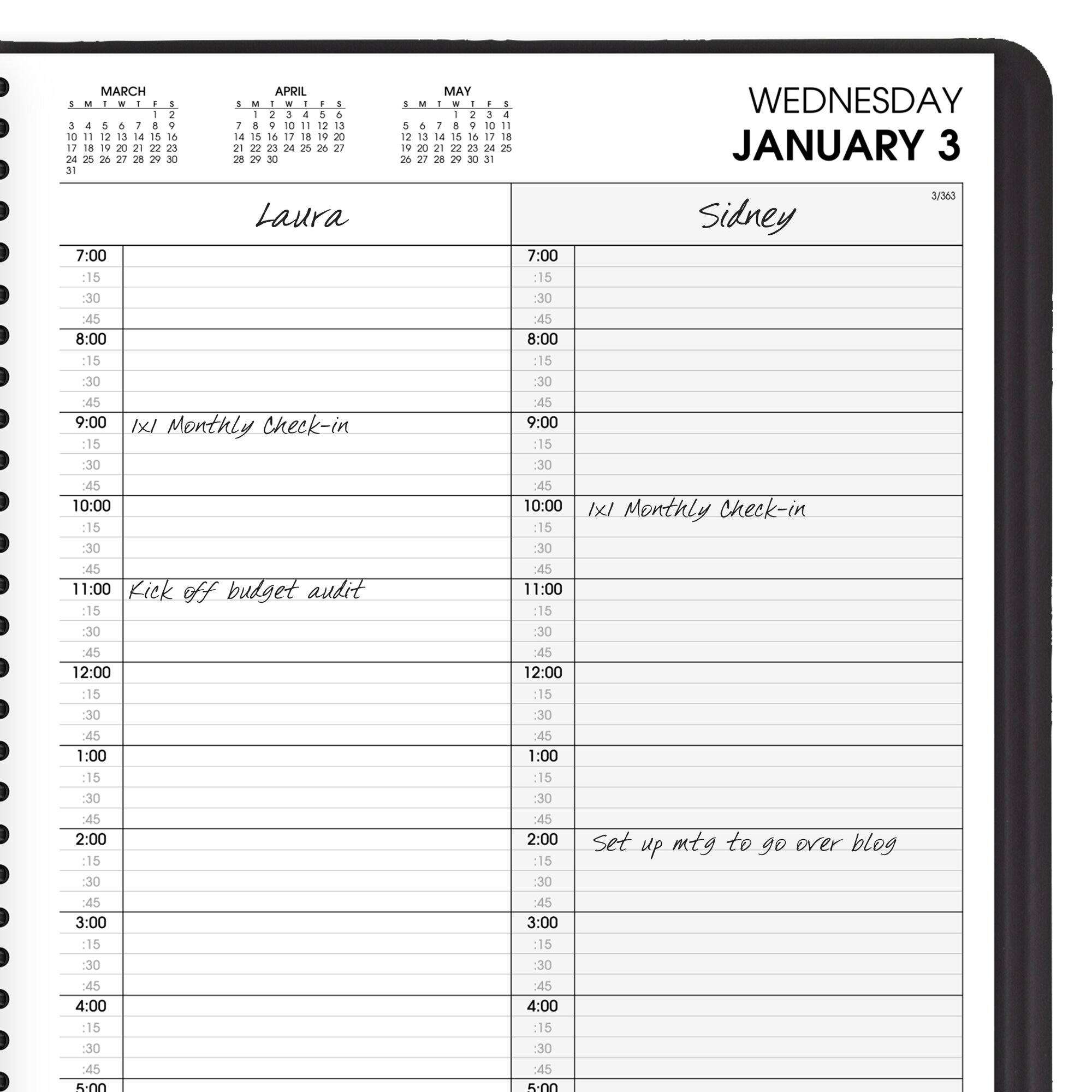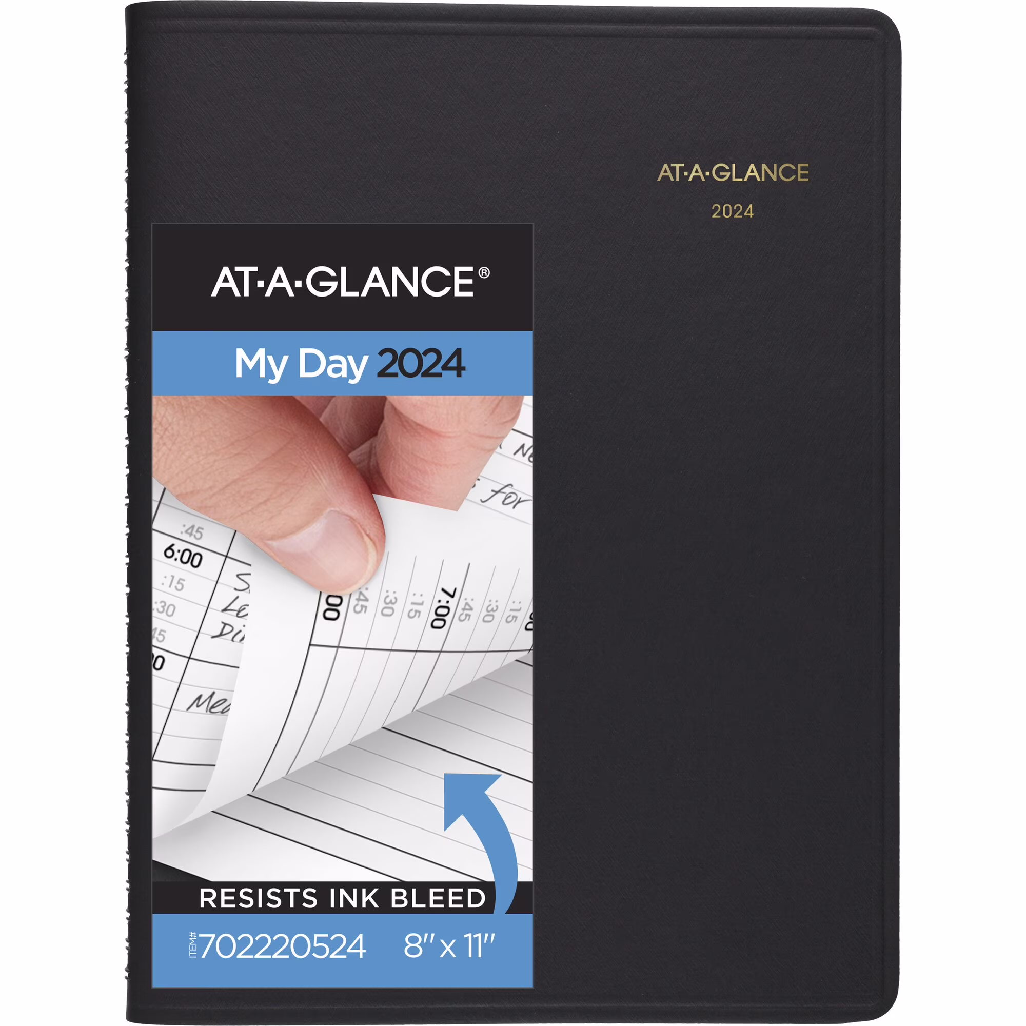 AT-A-GLANCE 2024 Two Person Daily Appointment Book Black Large 8 x 11 - Group
