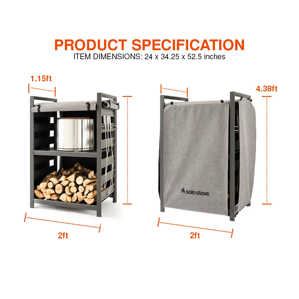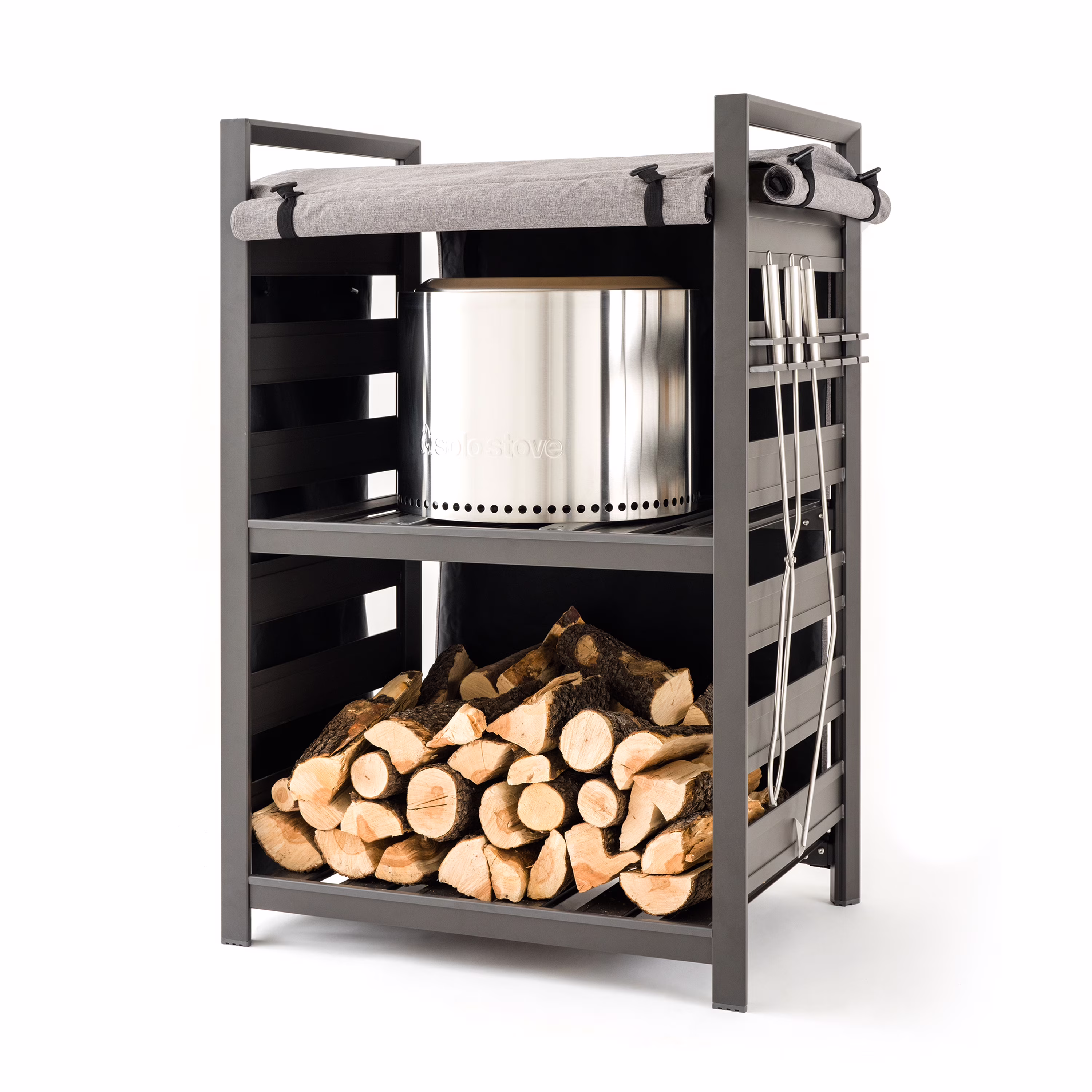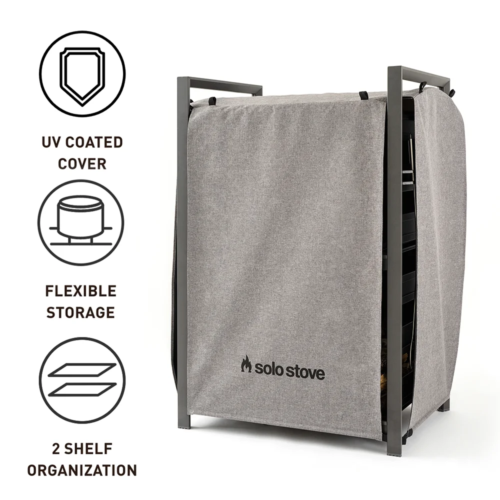Solo Stove Station + UVC Coated Cover Aluminum Firewood Rack for Fire Pits, Grey