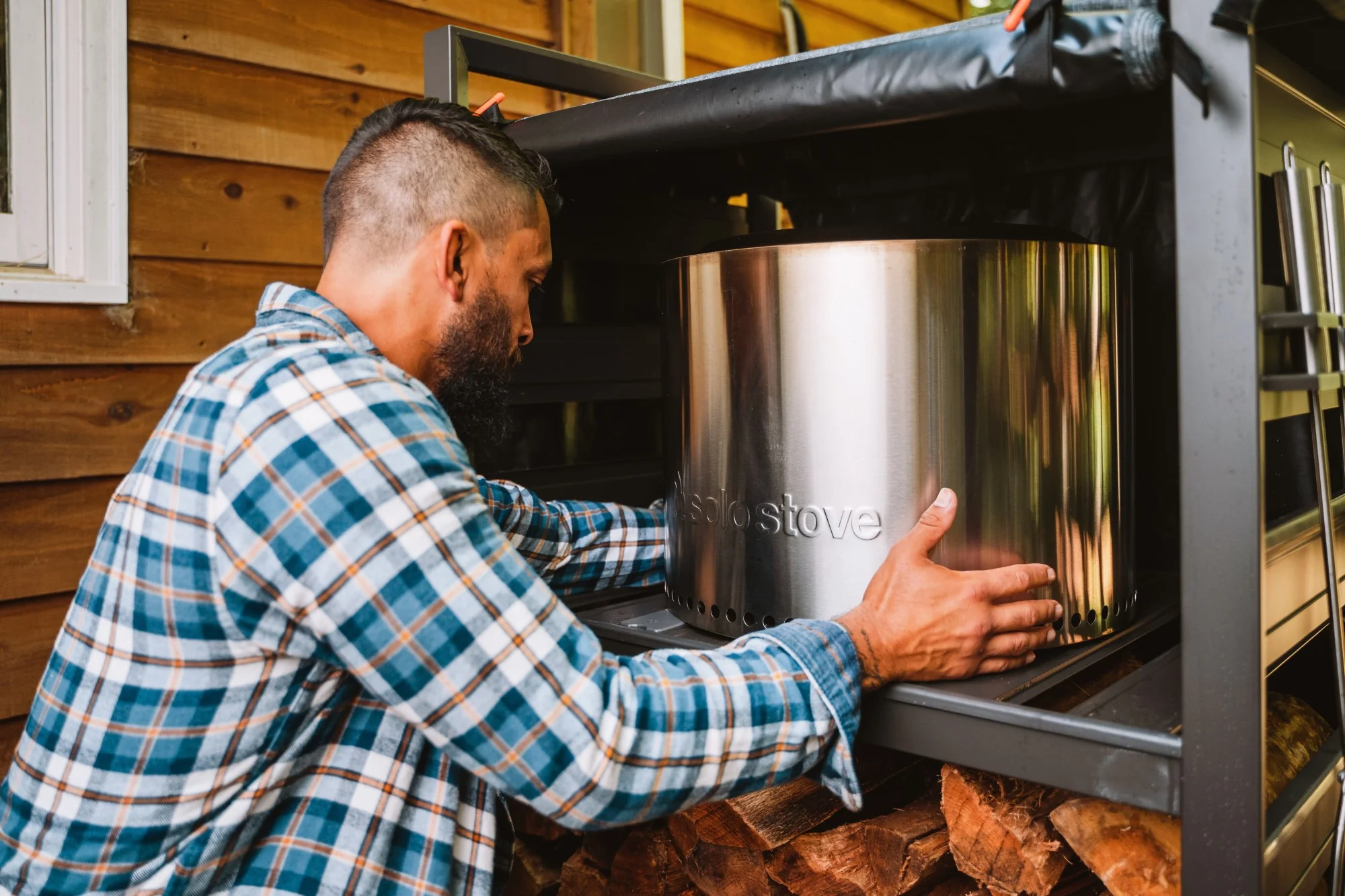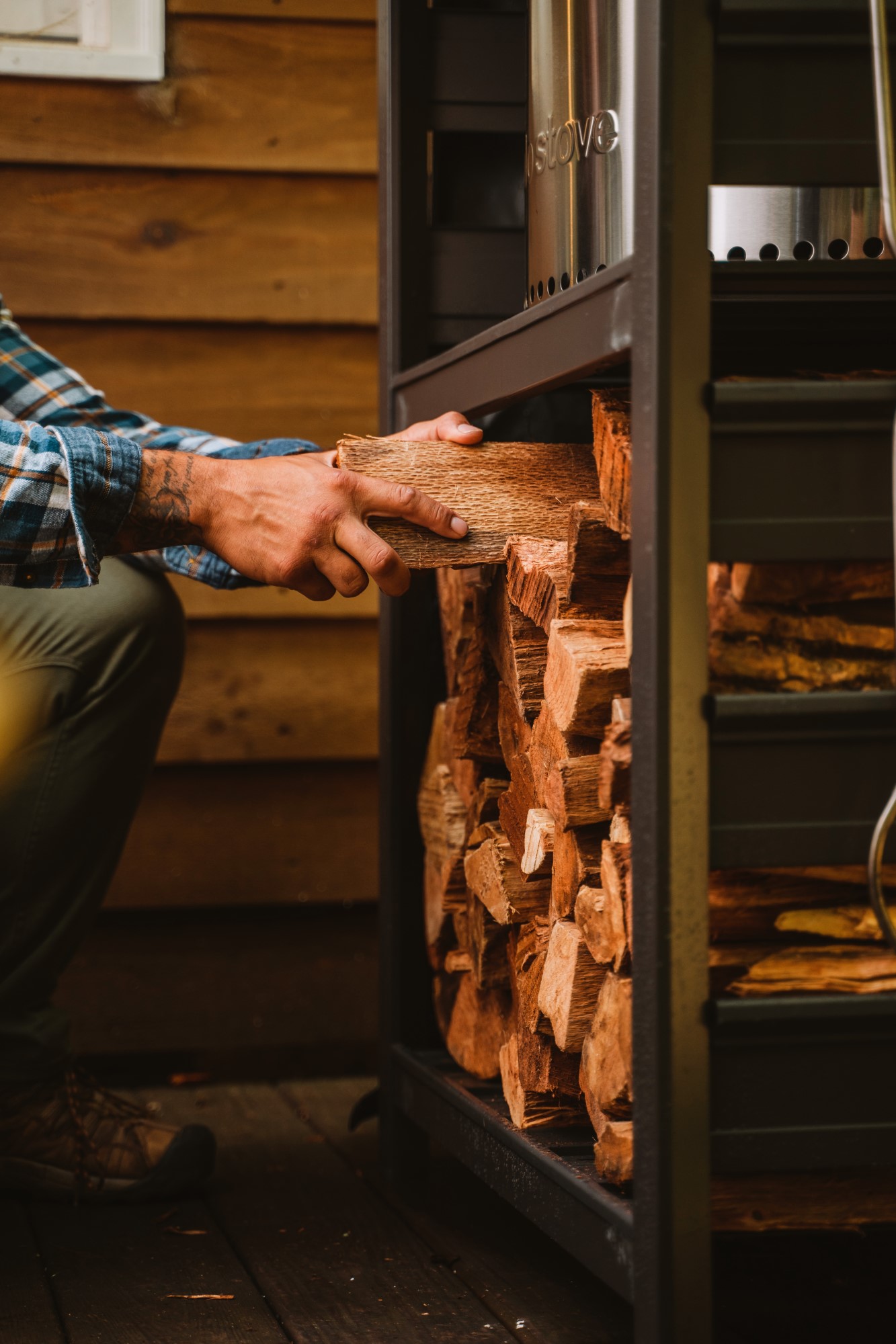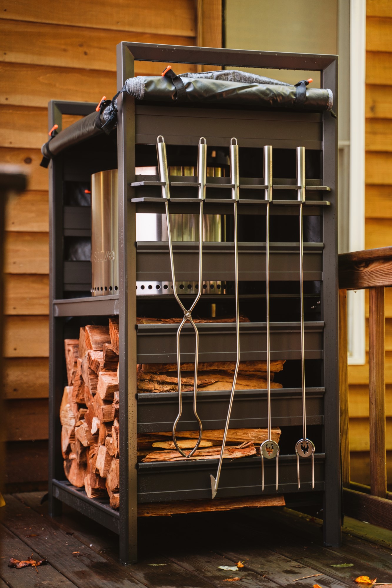 Solo Stove Station + UVC Coated Cover Aluminum Firewood Rack for Fire Pits, Grey